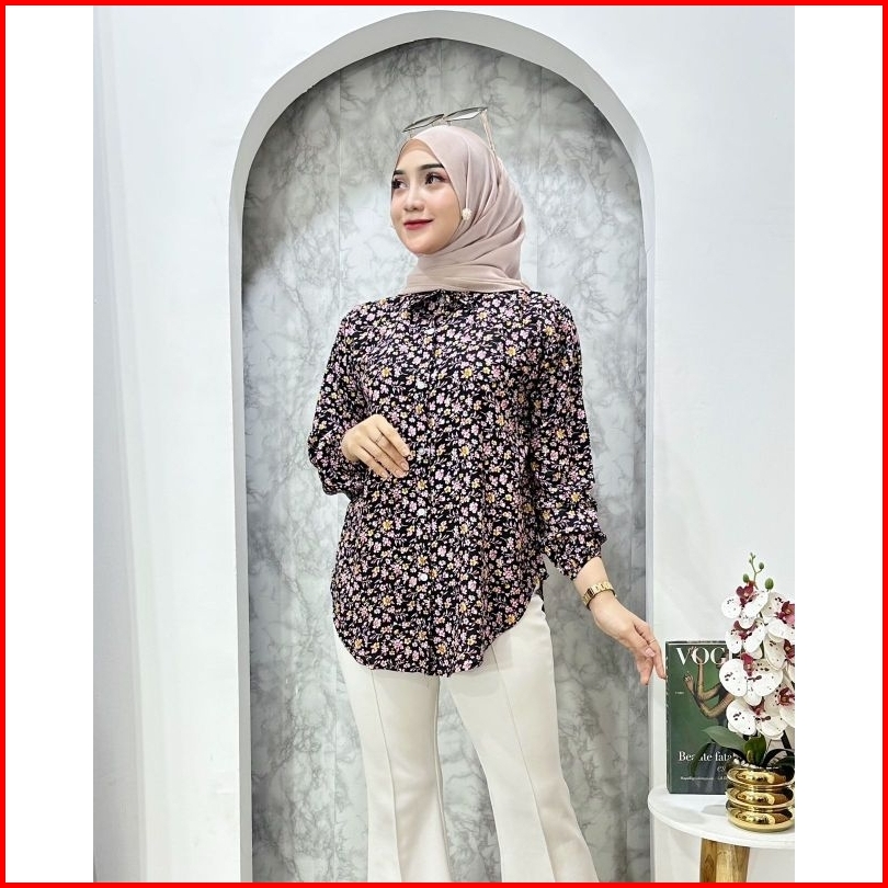 Flora Bluose Motif Bunga Kekinian Kemeja Bahan Rayon Koreanstayl