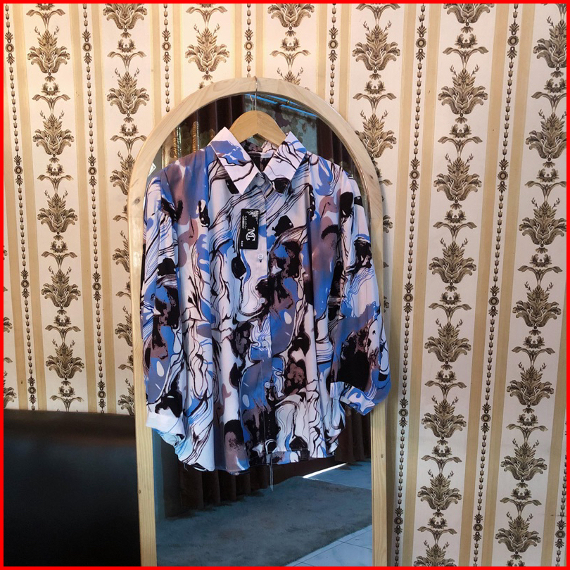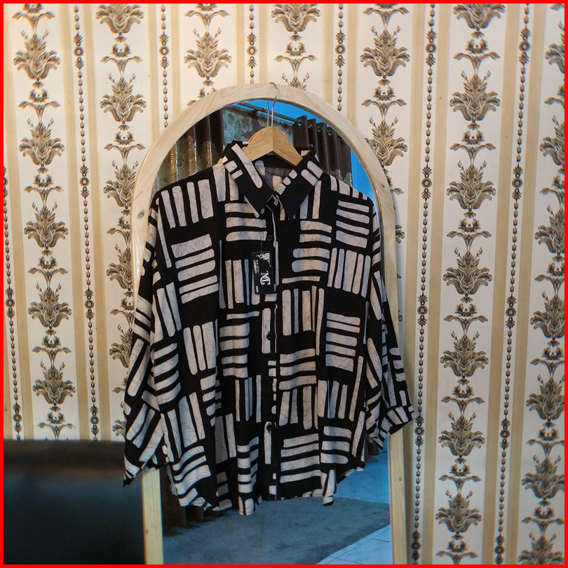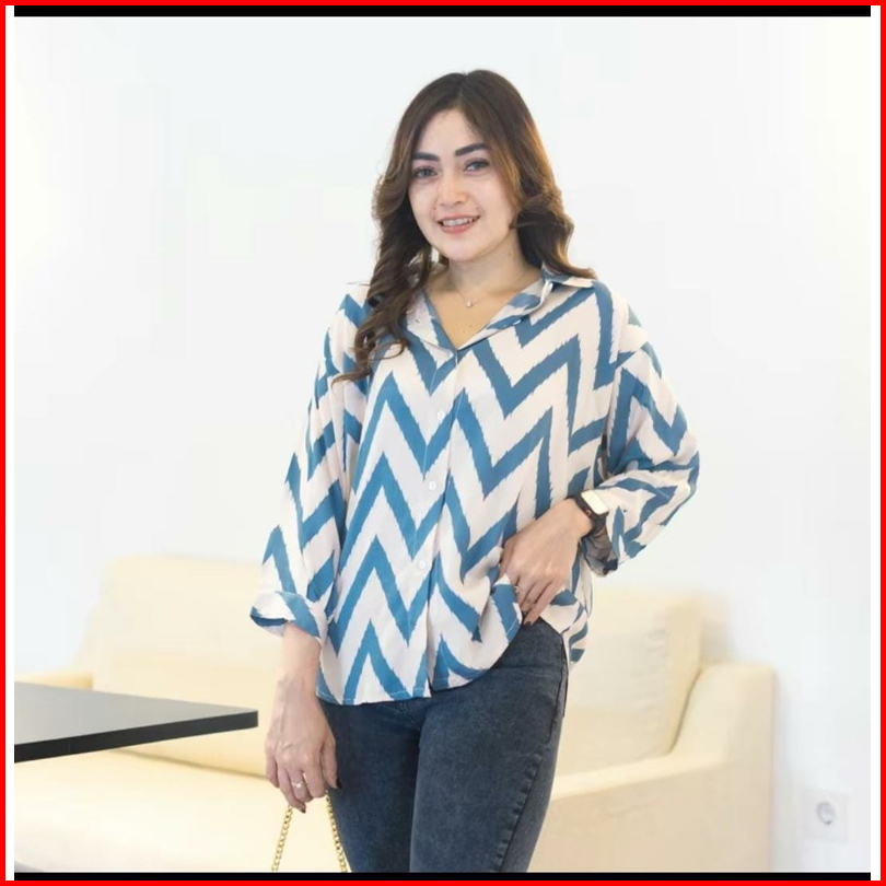 Kemeja Eliza Blouse Oversize Lengan Balon Katun Rayon Motif Premium