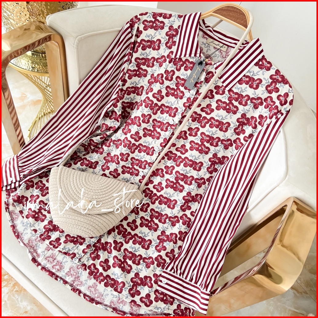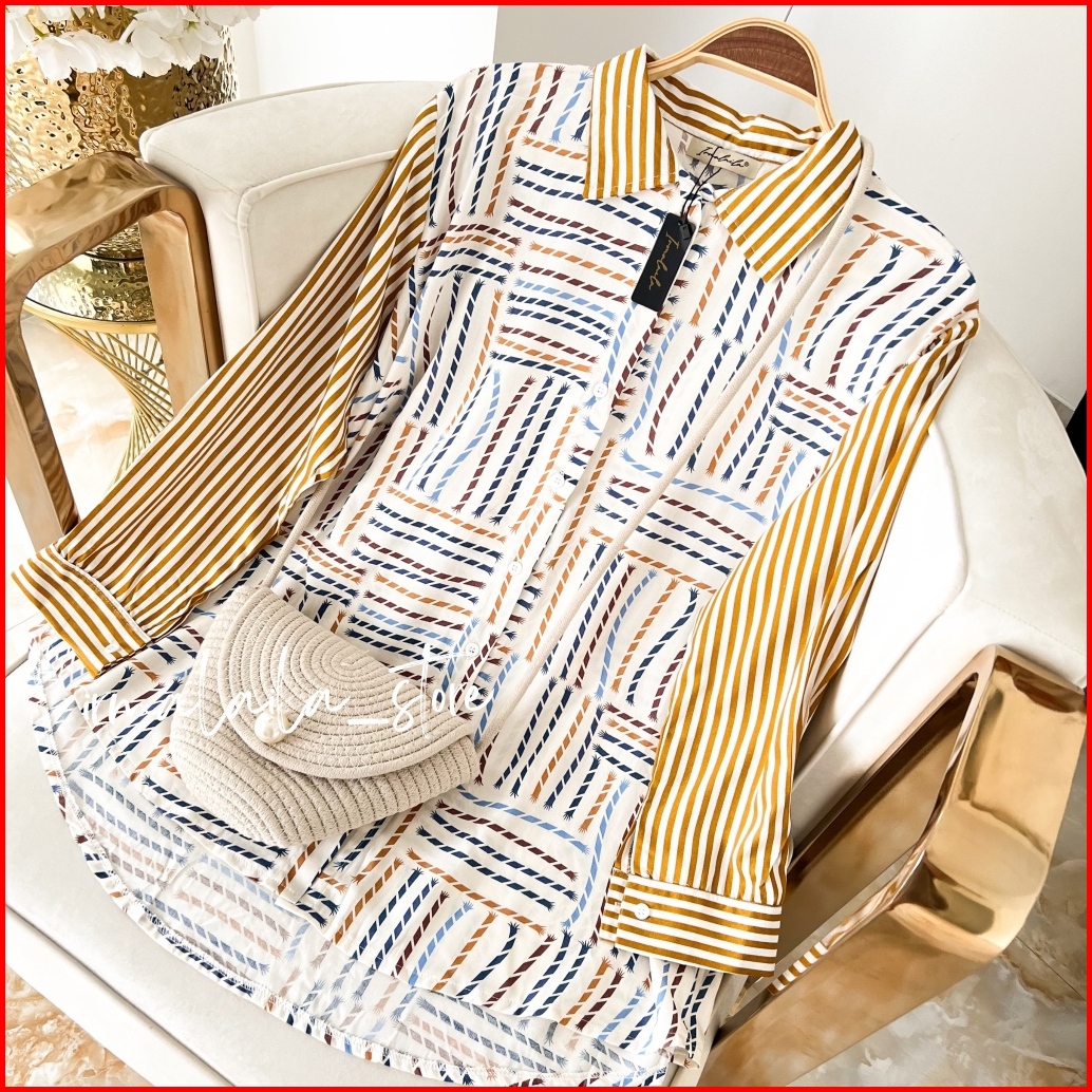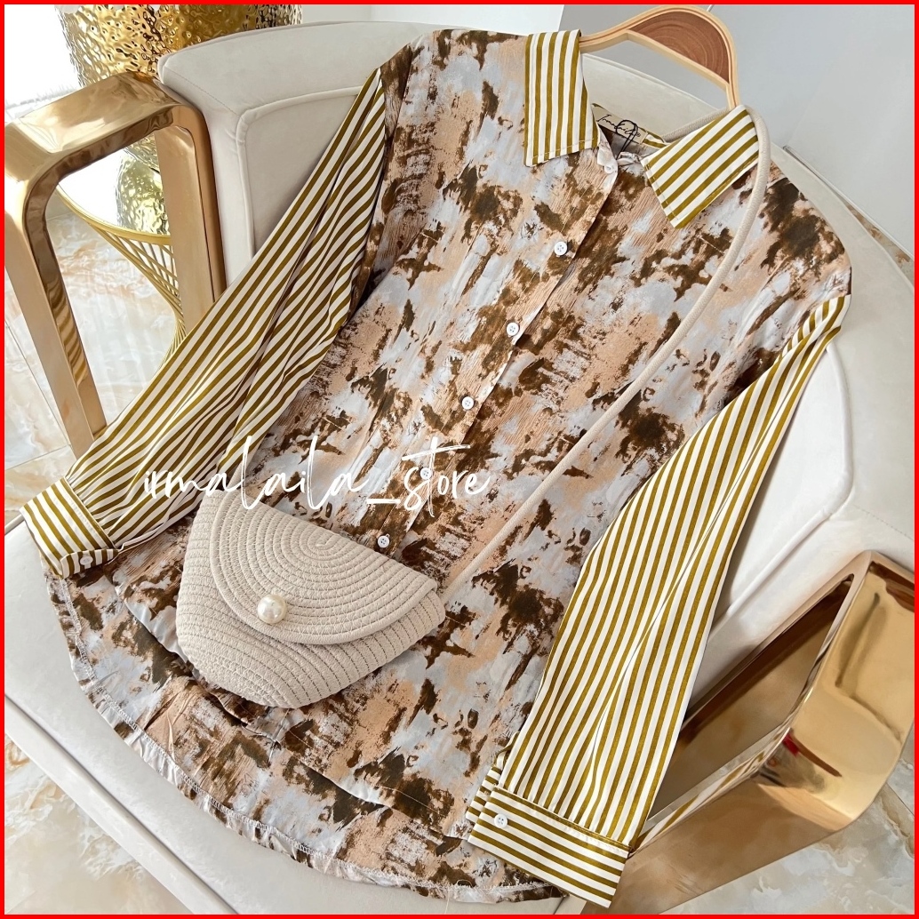 Irmalaila - Alma Shirt Motif Mix Salur Shirt Kemeja Wanita Casual Rayon Bumil Busui Friendly
