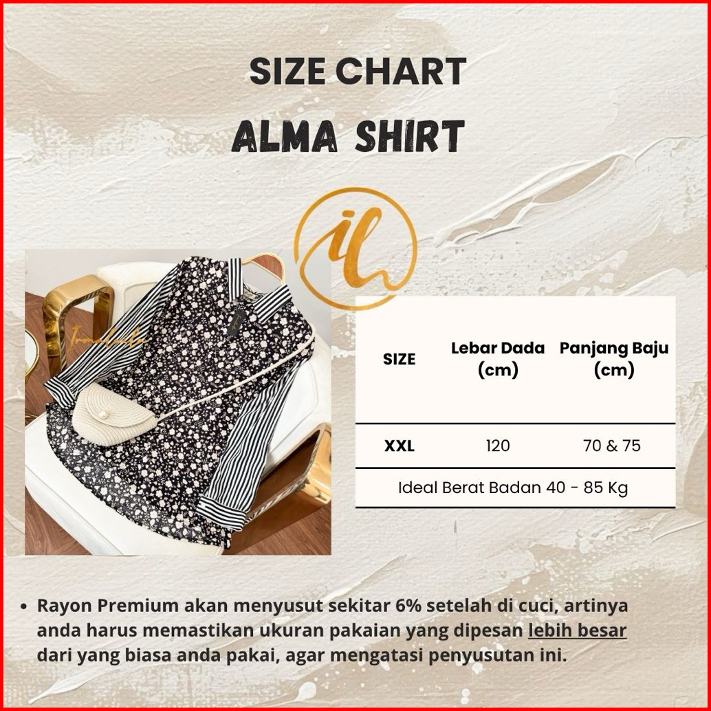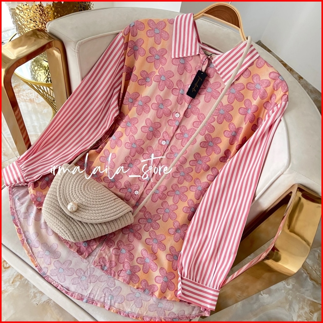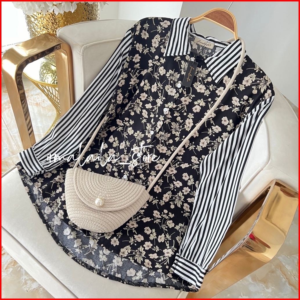 Irmalaila - Alma Shirt Motif Mix Salur Shirt Kemeja Wanita Casual Rayon Bumil Busui Friendly