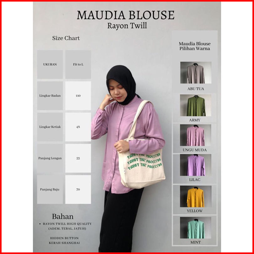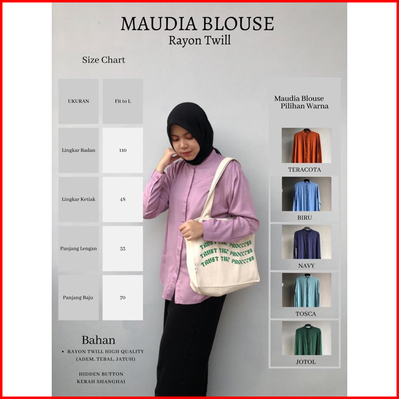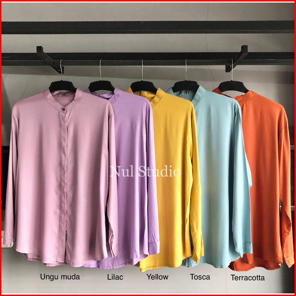 Maudya Kemeja Wanita Lengan Panjang Rayon Twill Premium Kemeja Adem Baju Kuliah Kantor Kerah Shanghai