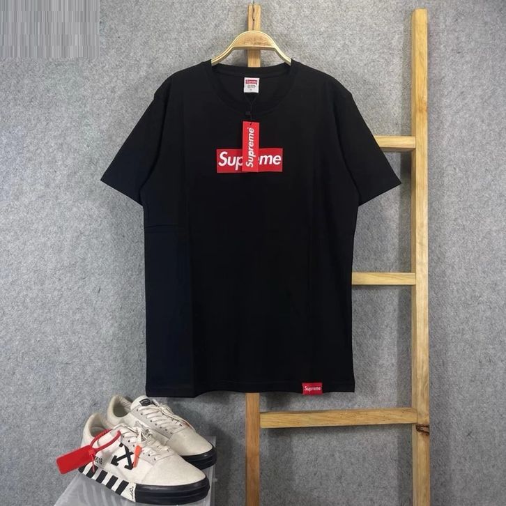 Kaos SUPREME logo tengah HITAM T-shirt Oversize pria/wanita