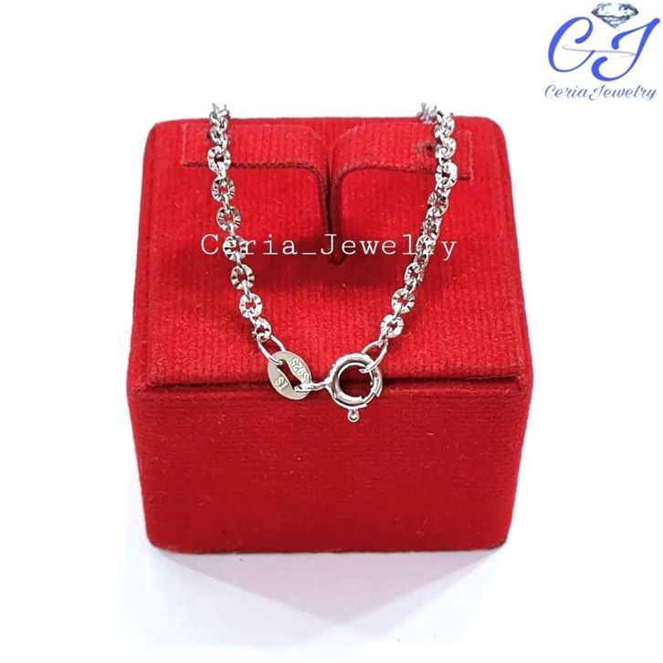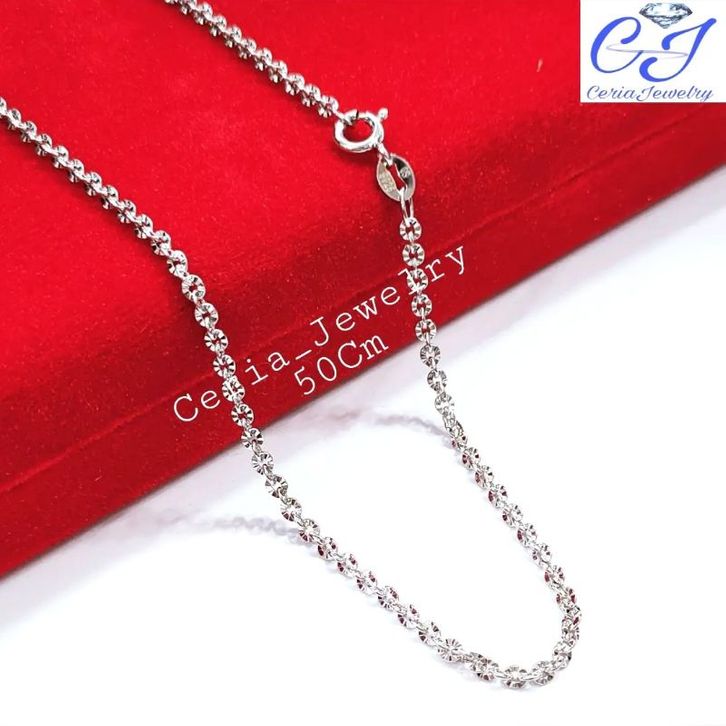 Kalungg Perak Pria/Wanita Silver 925 Lapis Ems Putih Model Rantai Nori Ukir 45 - 50 Cm - Perhiasan Perak