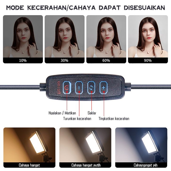 LAMPU LED 8 INCI VIDEO LIGHT FILL LIGHT TRIPOD RING FOTOGRAFI LIVE VLOGGING USB POWERED LIGHT KIT LAMPU FILTER VIDEO
