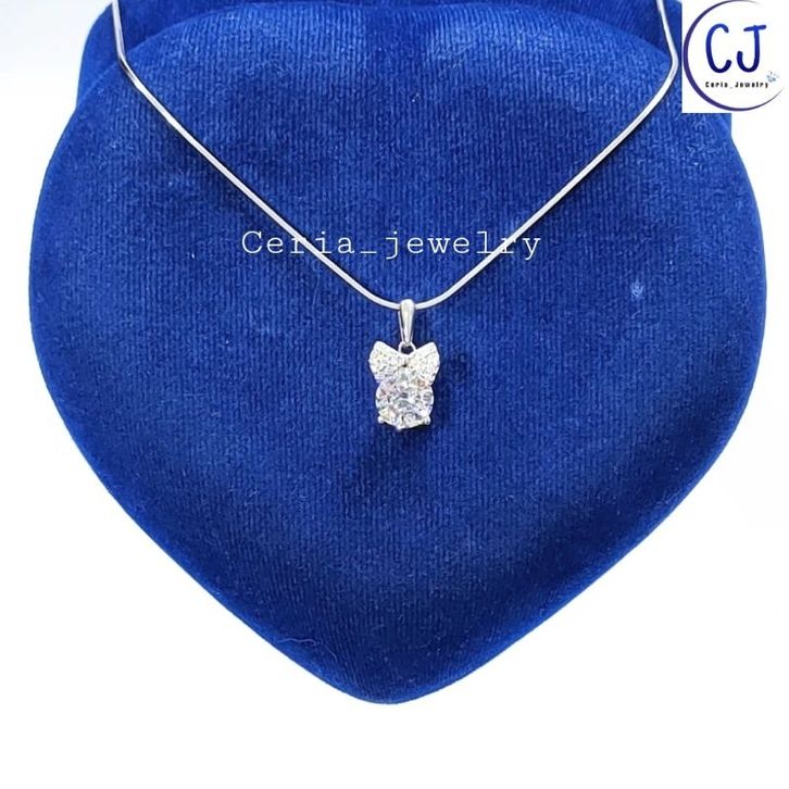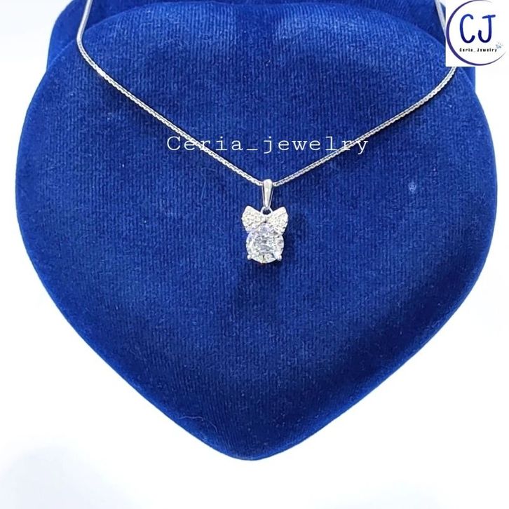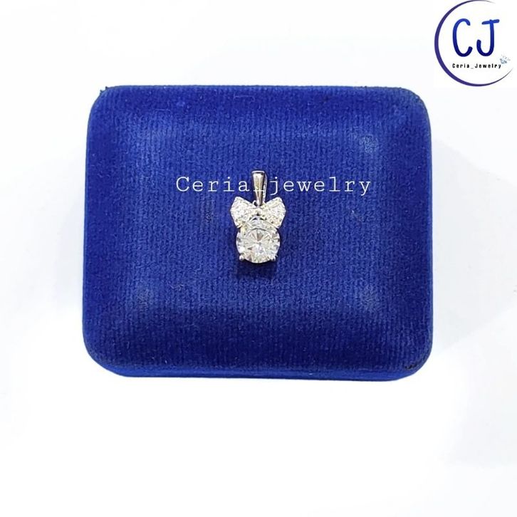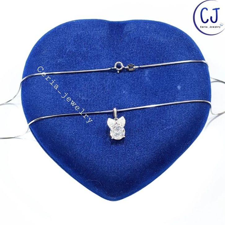 Kalungg Perak Asli Silver 925 Lapis Ems Putih Rantai ItaliSanta Cassandra Lontin Pita Permata - Kalungg Perak AntiKarat