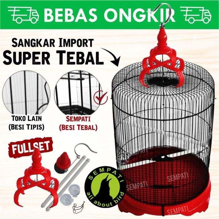 Sangkar kandang burung murai jumbo fullset 46cm pvc tebal besi import - Hitam