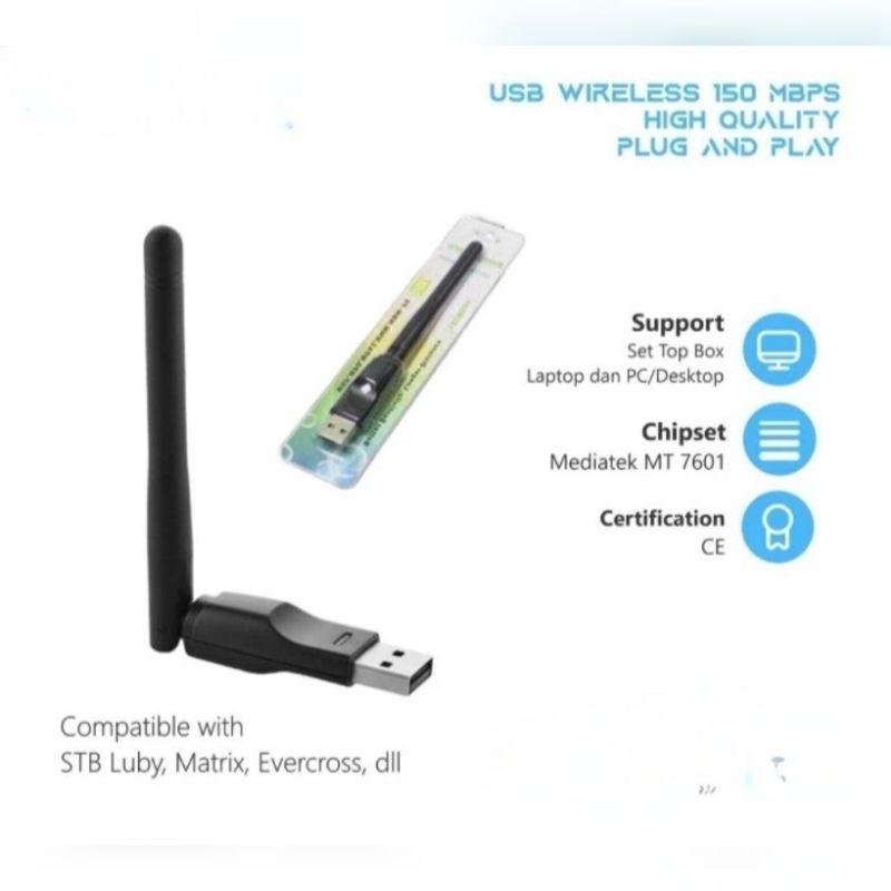 USB DONGLE WIFI WIRELESS ADAPTER RECEIVER MT 7601BISA UNTUK SET T0P BOX LAPT0P PC