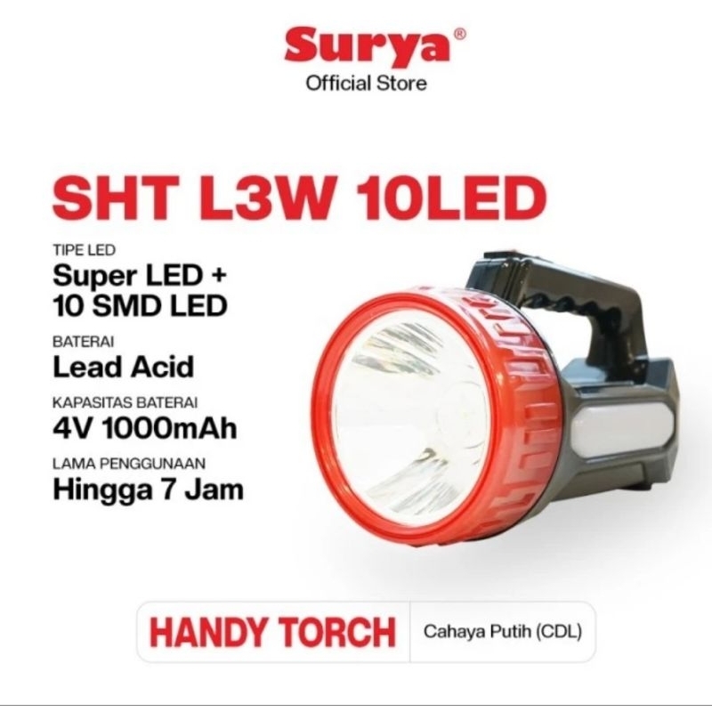 SURYA SHT L3W 10LED LAMPU SENTER BESAR + LED EMERGENCY RECHARGEABLE