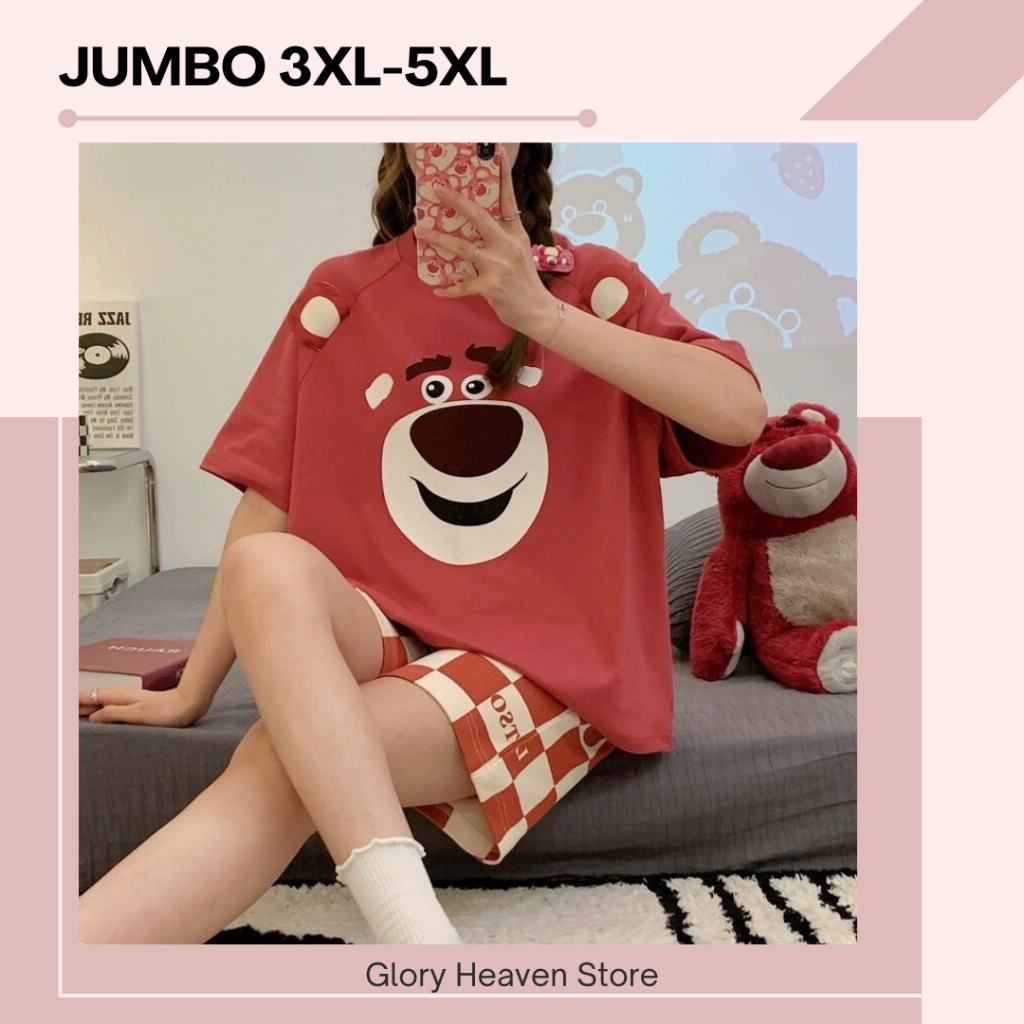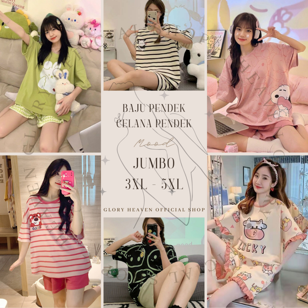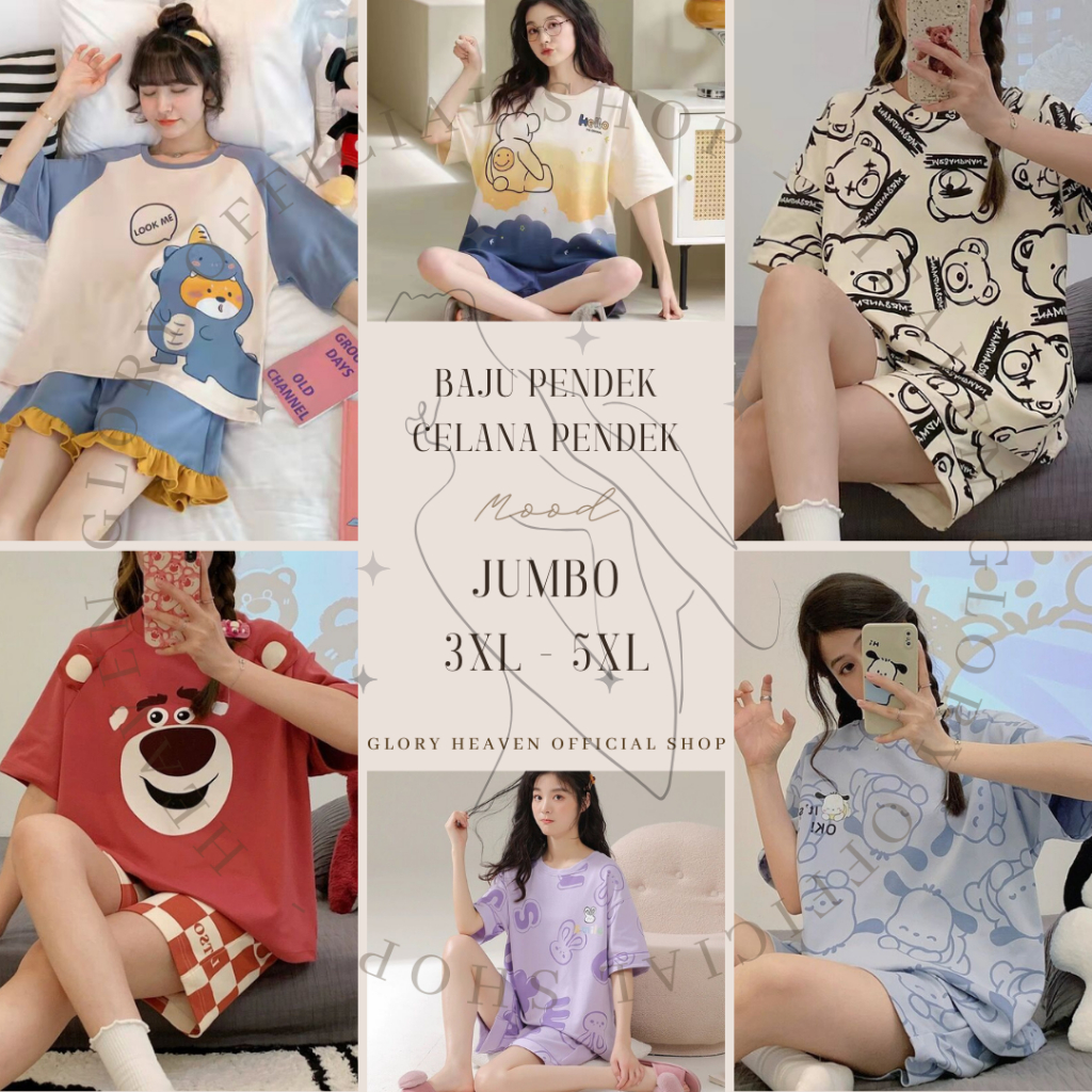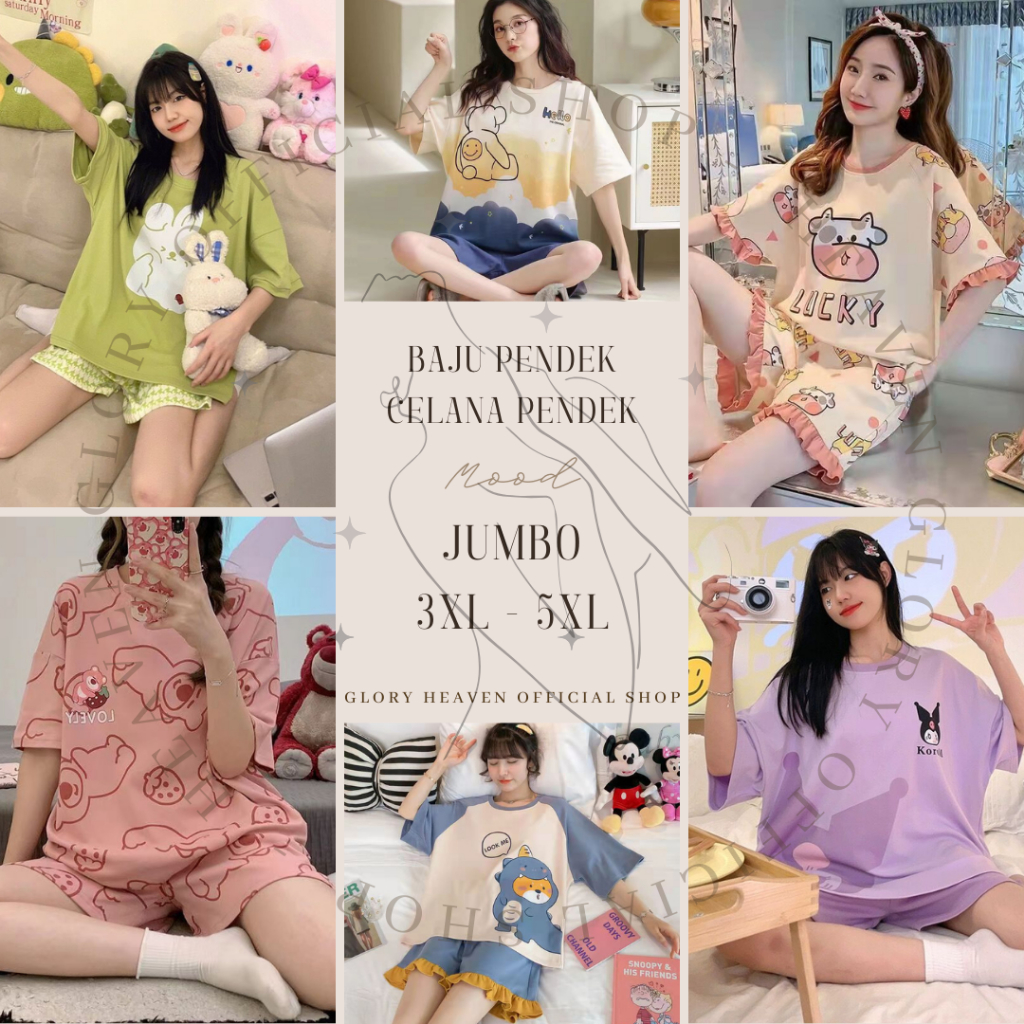 Glory Baju Tidur Wanita Lengan Pendek Celana Pendek JUMBO 3XL 5XL | Pajama Import | Baju Tidur Jumbo Set | Piyama I