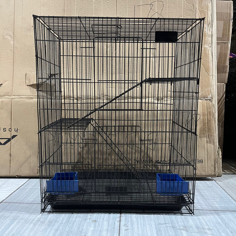 KANDANG KUCING KELINCI BURUNG BESI LIPAT MURAH FREE 2 TEMPAT MAKAN SIZE L 60X40X40 CM