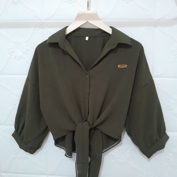 Atasan kemeja Crop Tali Bawah Terbaru Wanita KOREA STYLE CROP IMPORT MERAH MODERN JUMBO KEKINIAN CROP