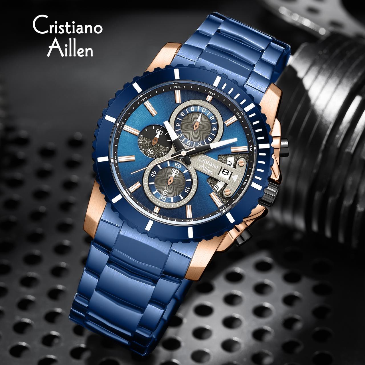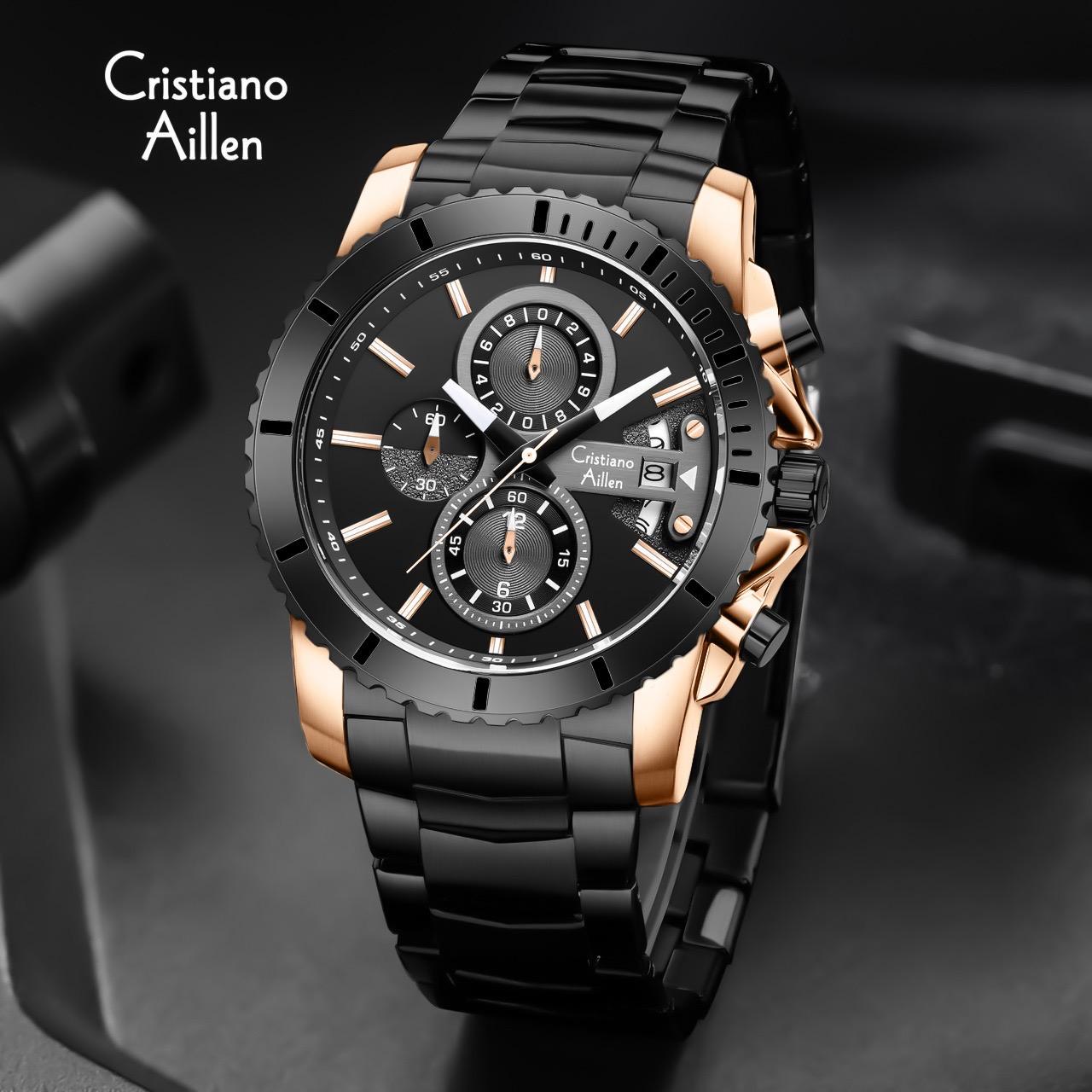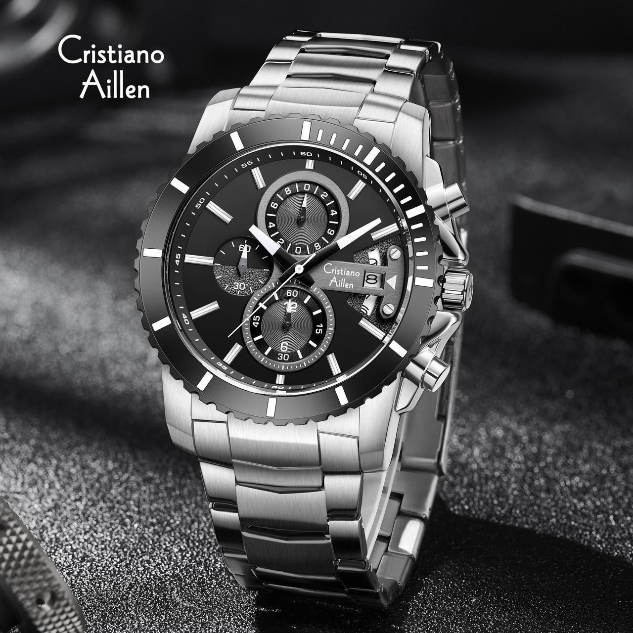 Jam Tangan Pria Cristiano Aillen CA 8898 Original Chronograph Rantai Stainless Steel Sapphire Glass Garansi