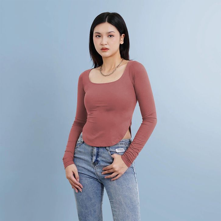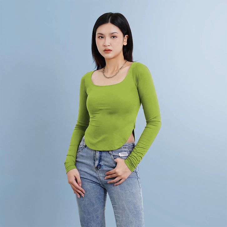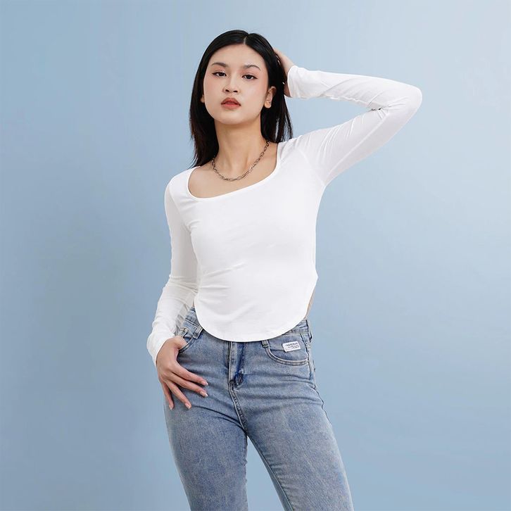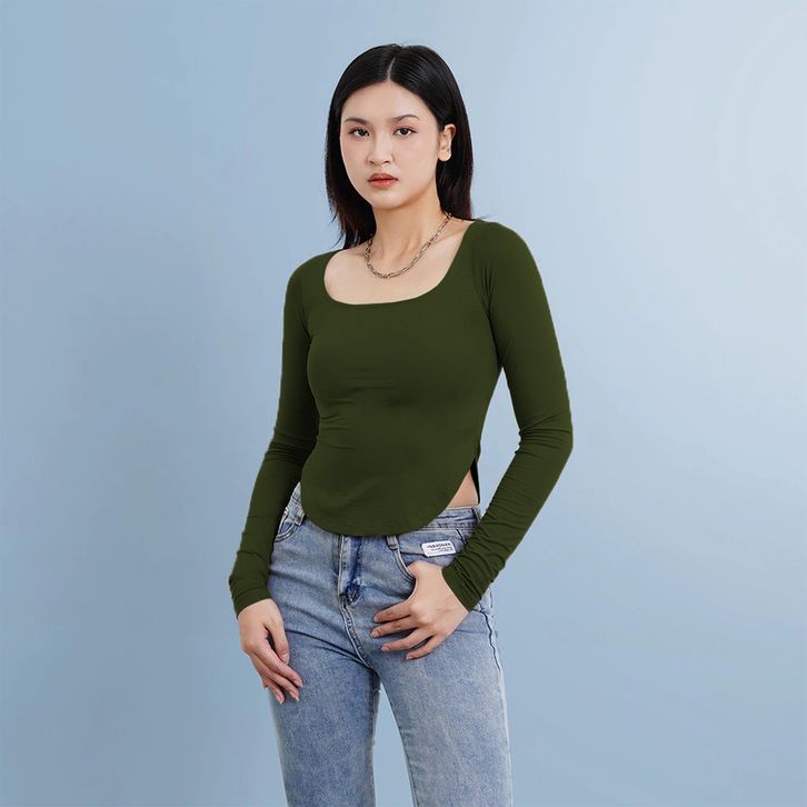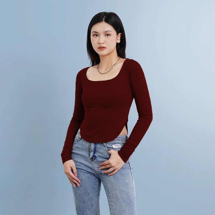 Crop Top Oval Lengan Panjang Wanita - Fashion Korea Wanita Spandek Rayon Premium 6024