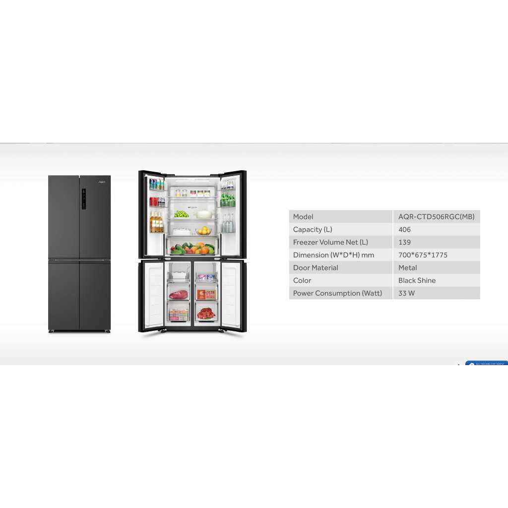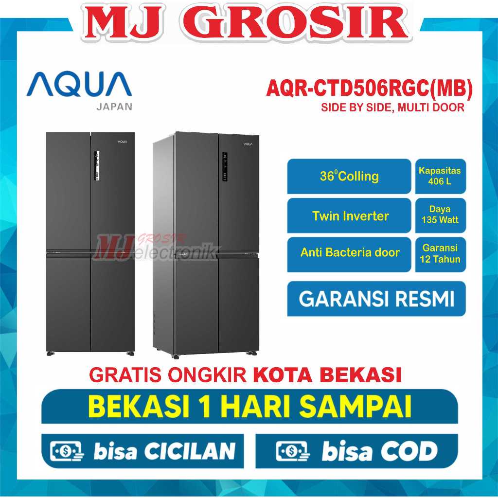 KULKAS AQUA JAPAN AQR-IM 525 AM / AQR-CTD 506 RGC LEMARI ES 4 PINTU SIDE BY SIDE
