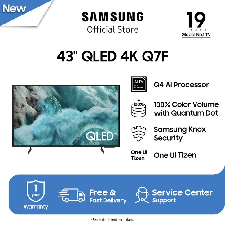 Samsung Q7F 43/50 Inch QLED 4K Smart TV HDR Q4 AI Processor Samsung Knox Security Garansi Resmi