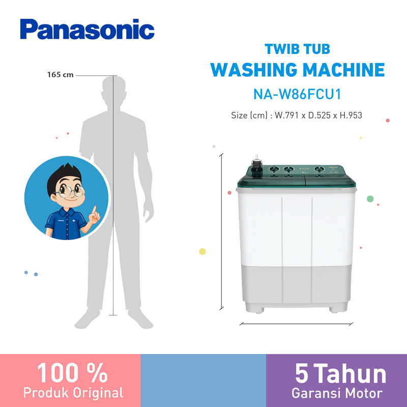 PANASONIC NA-W86FCU1 MESIN CUCI 2 TABUNG RATU SERIES [8.5 KG]