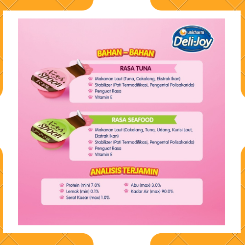 [ 3 Pack ] Makanan Basah Kucing Unicharm Pet Deli Joy Sendok Cat 10 GR x 4 Pcs