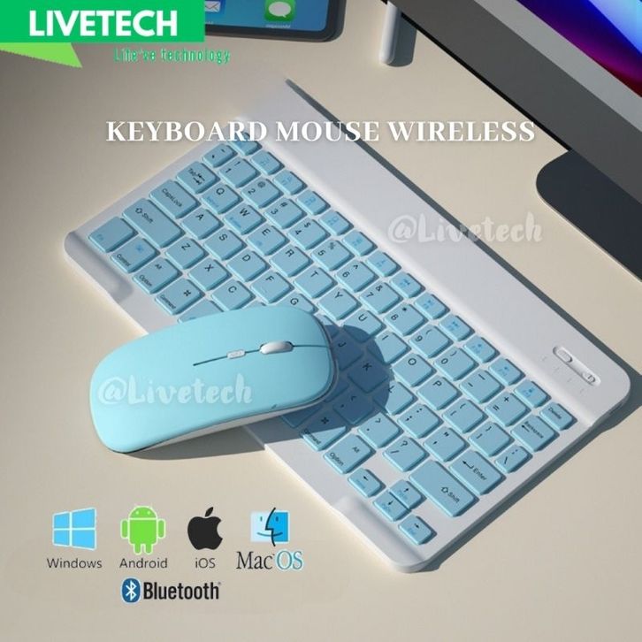 LIVETECH Keyboard Bluetooth dan Mouse Logitech Wireless 10 Inch Lightweight Portable PC Tablet IOS Android Hp