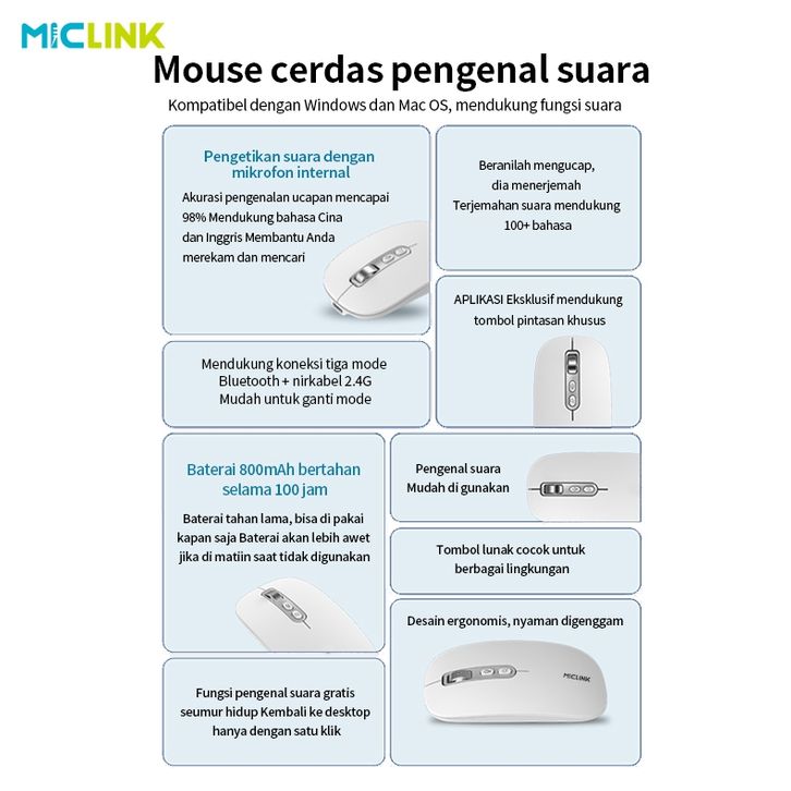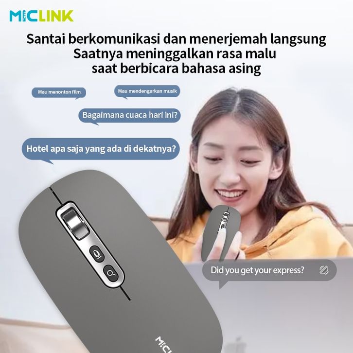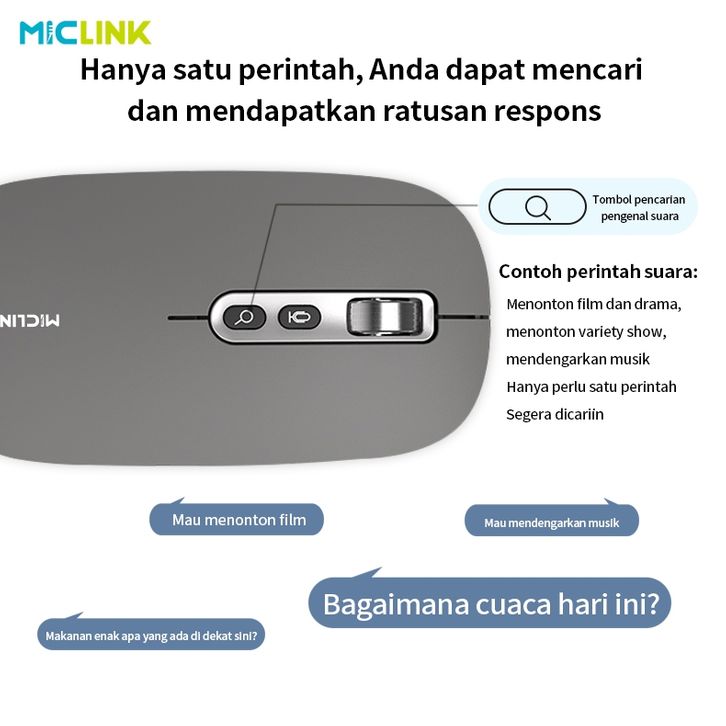 MICLINK RULINK Mouse AI Cerdas Pengenal Suara-M108 Rechargeable dengan Receiver USB untuk PC Laptop Silent Click Wirele