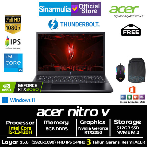 ACER NITRO V15 ANV15-51 I5-13420H RTX2050 512GB SSD 8GB 144HZ WIN11+OHS