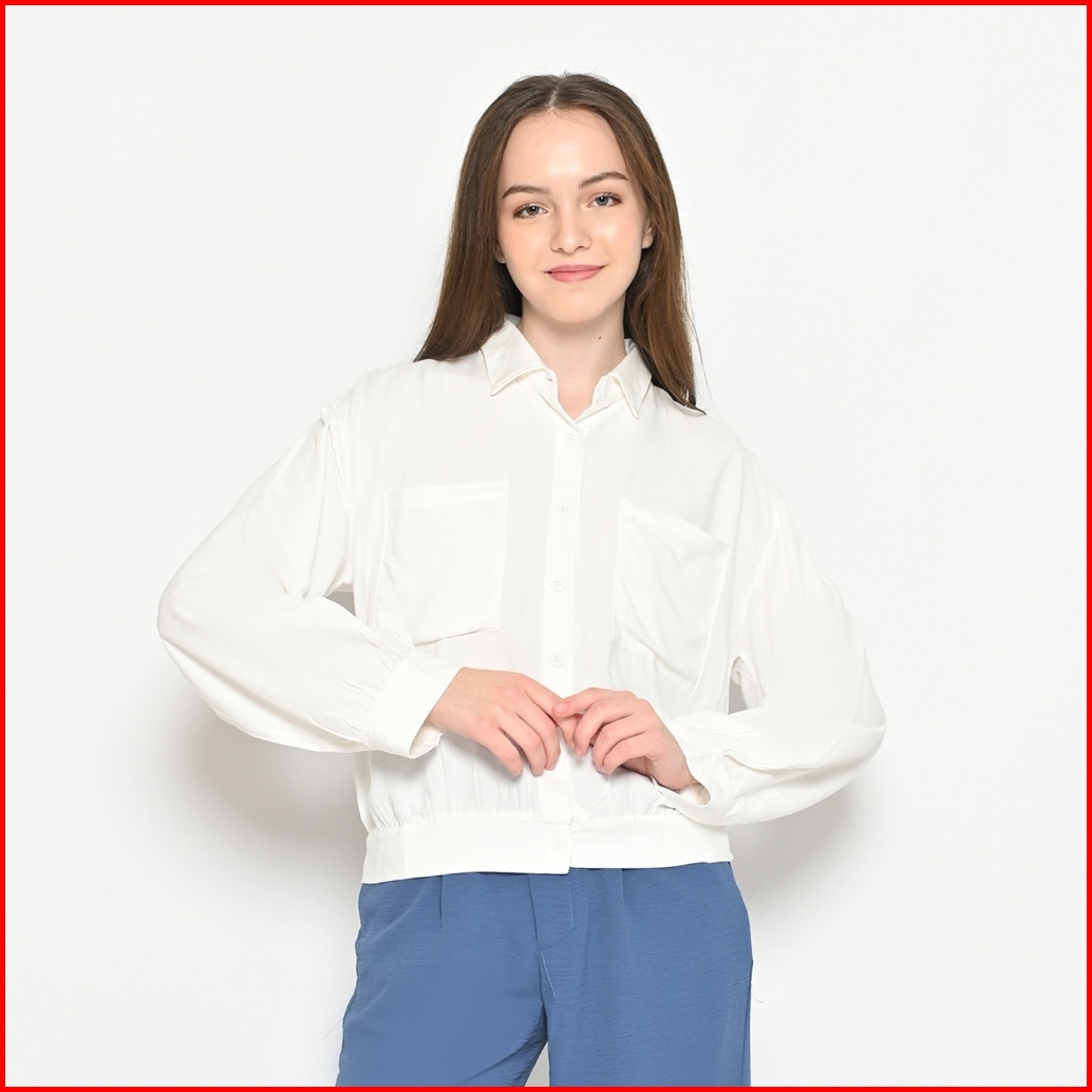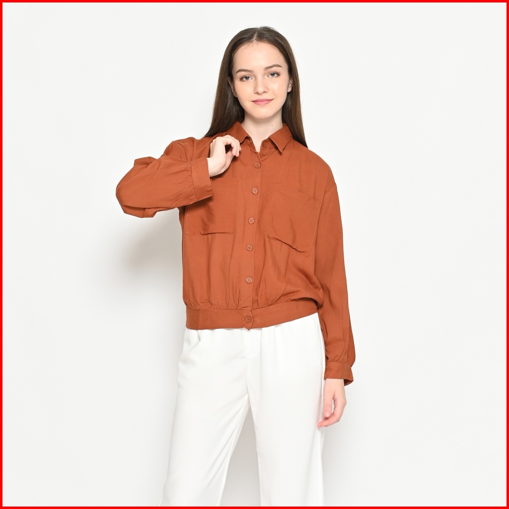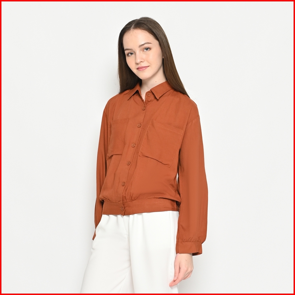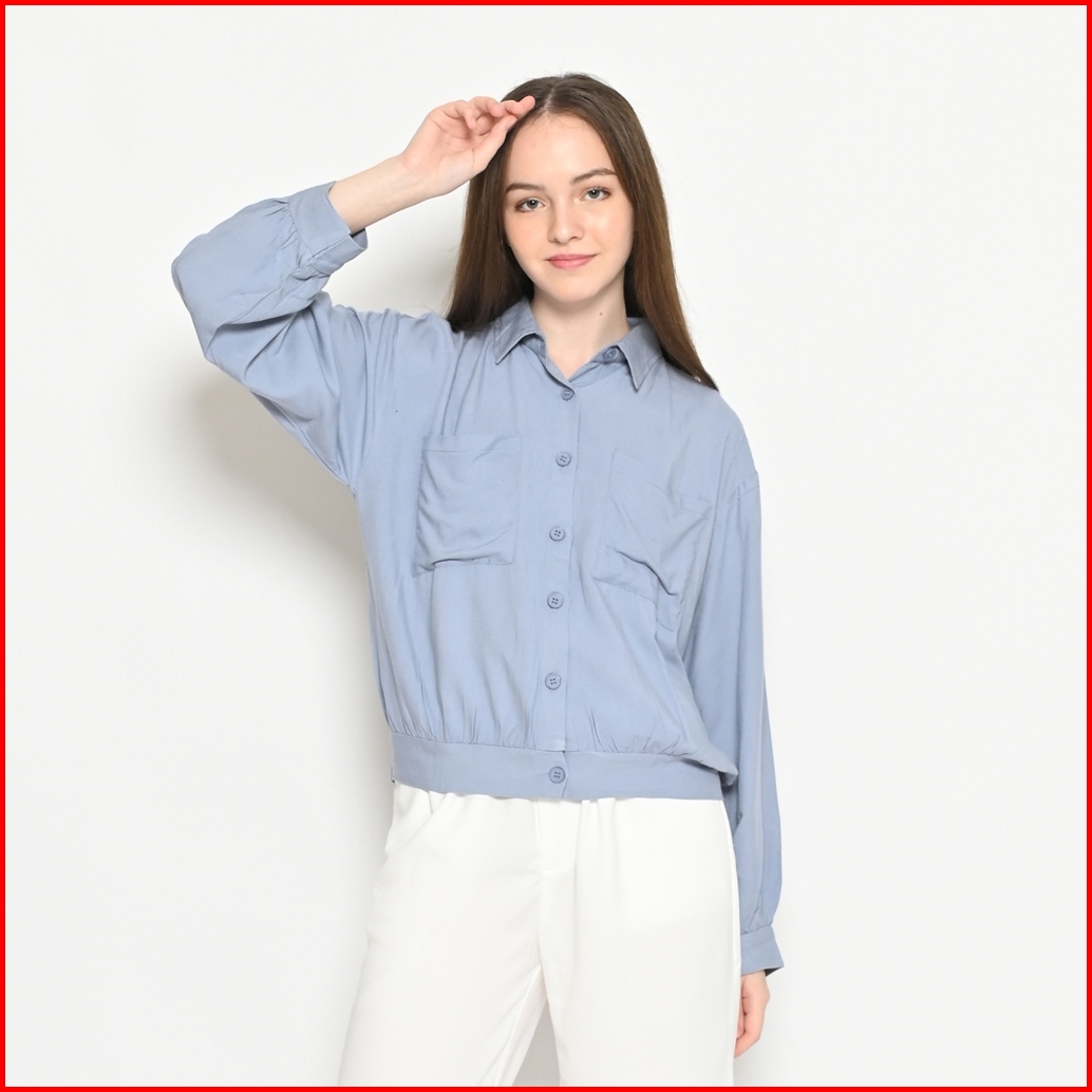 Queentin Kemeja Wanita Casual 0085 Rayon Viscose Polos Lengan Panjang