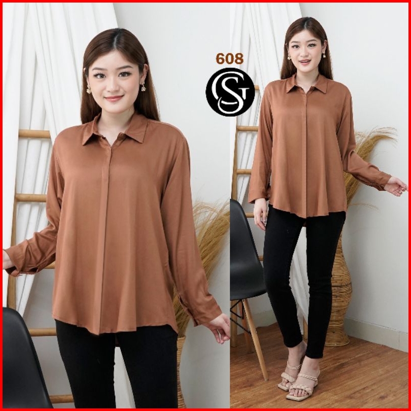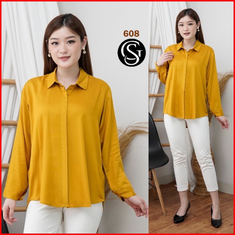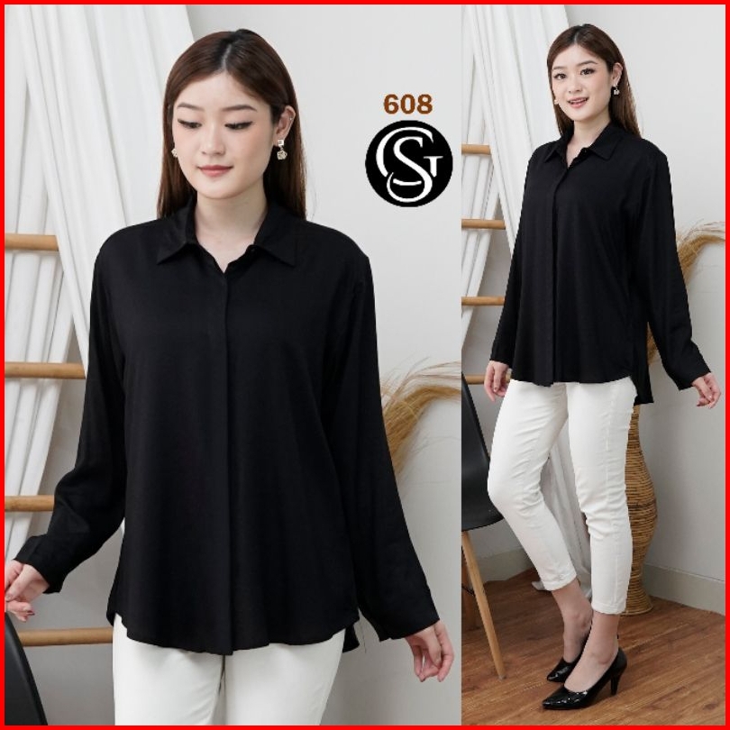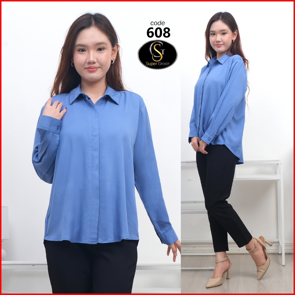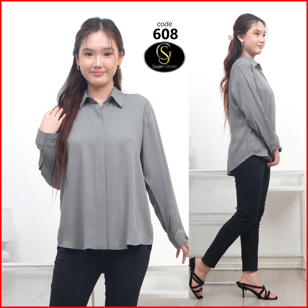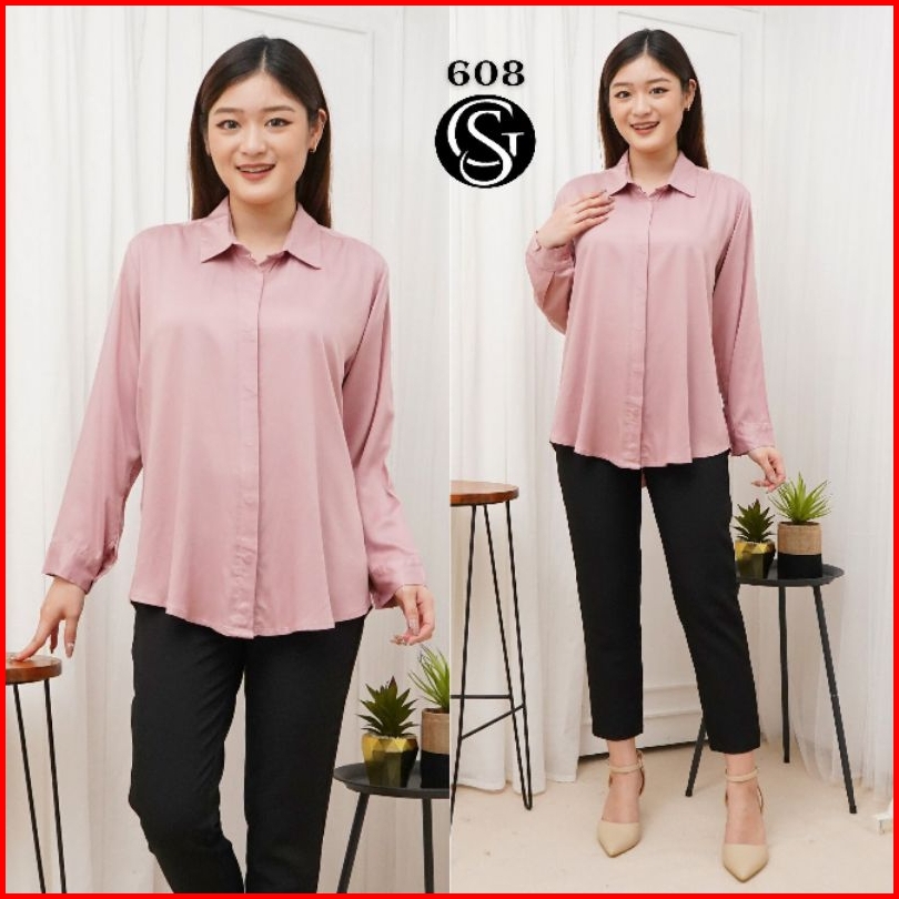 Kemeja Wanita Kemeja Wanita Basic Polos Krep Double - 608