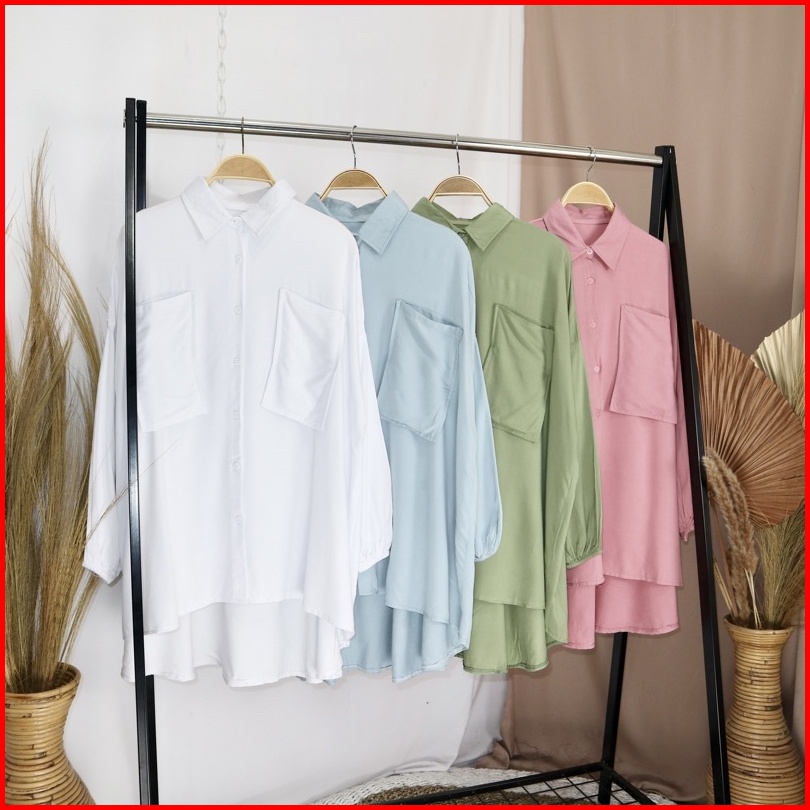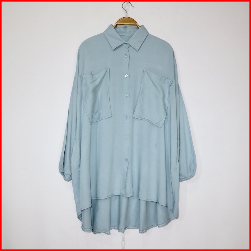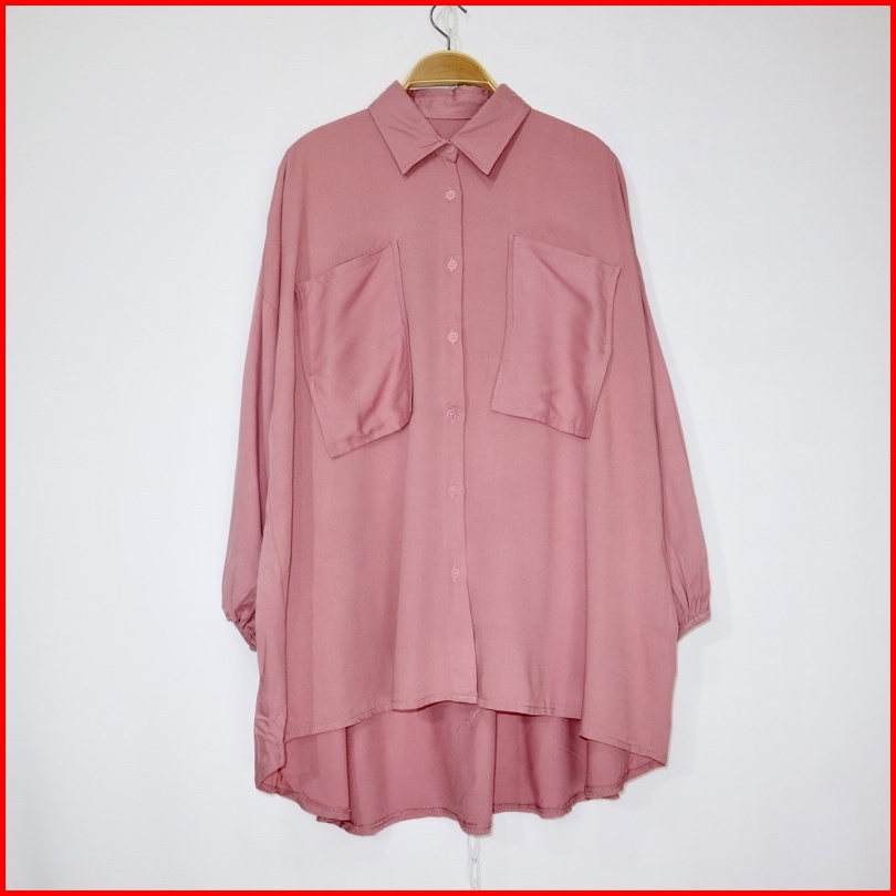 Kara.id Selina Shirt Pocket - Kemeja Oversize Wanita Jumbo - Baju Kemeja Wanita