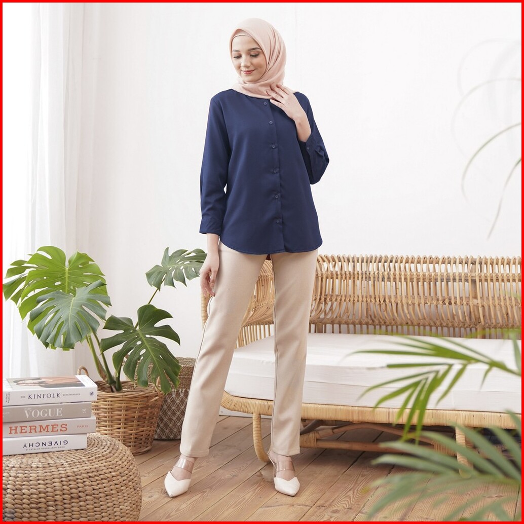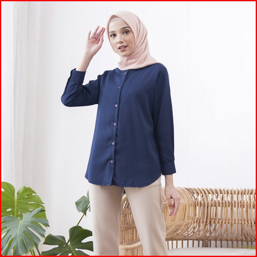 Wulfi Atasan Kemeja Daily Shirt Navy