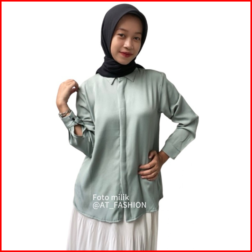Xl Ld 102cm Kemeja Polos Shakila Twill Kemeja Basic Wanita Kemeja Kerja Wanita
