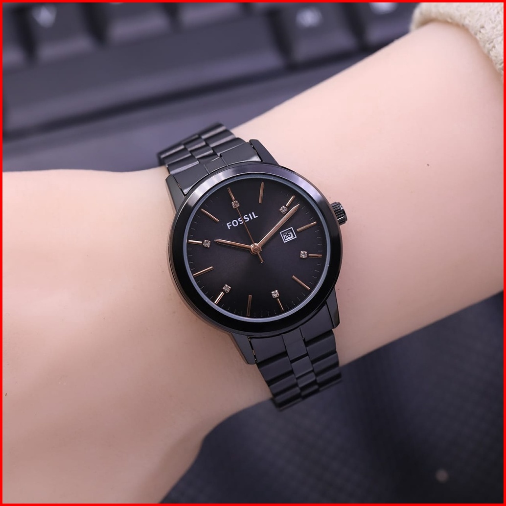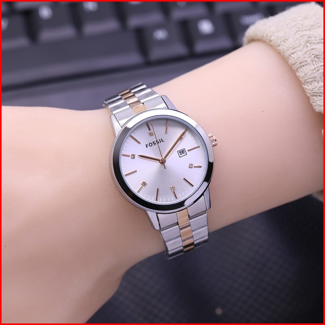 Jam Tangan Wanita Fashion Anti Air Tali Rantai Solid Case Bulat Tanggal Aktif Free Box Baterai Cadangan