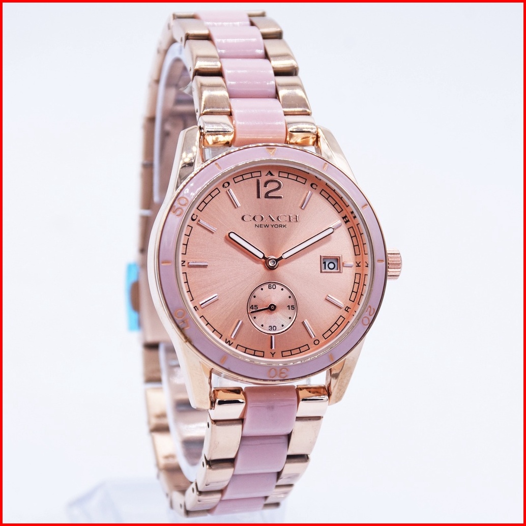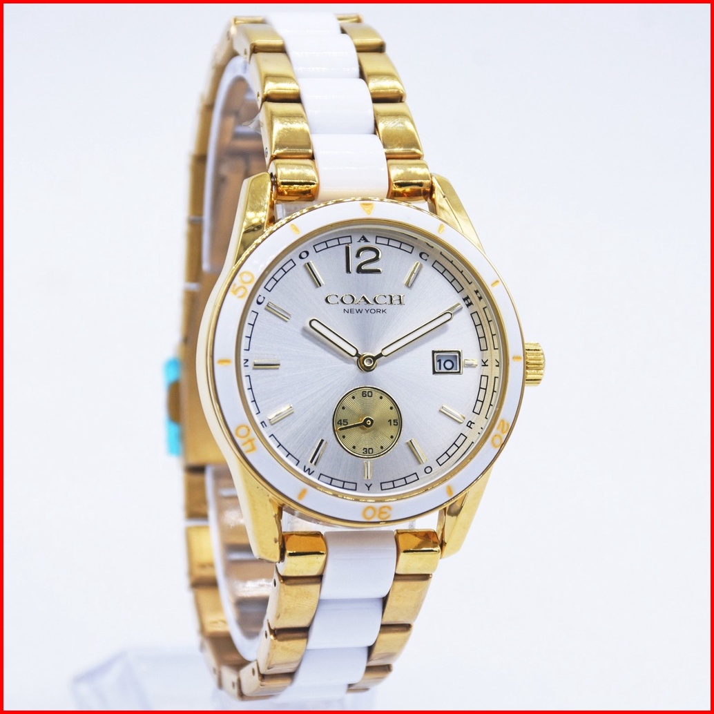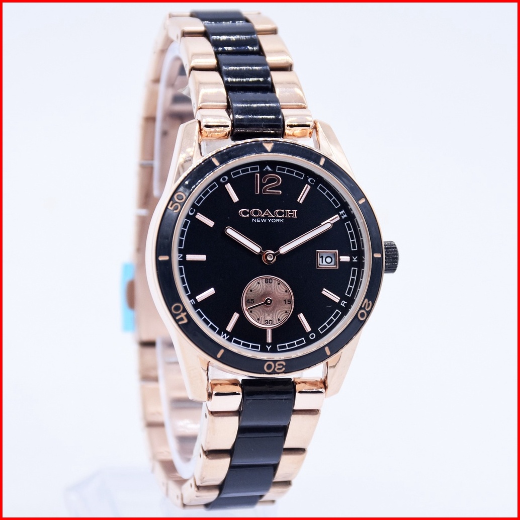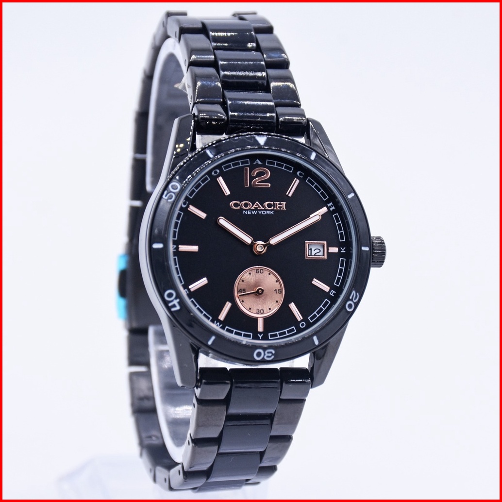 Jam Tangan Wanita Coach-1297 Lg Rantai Body Bulat Chrono Tanggal Aktif