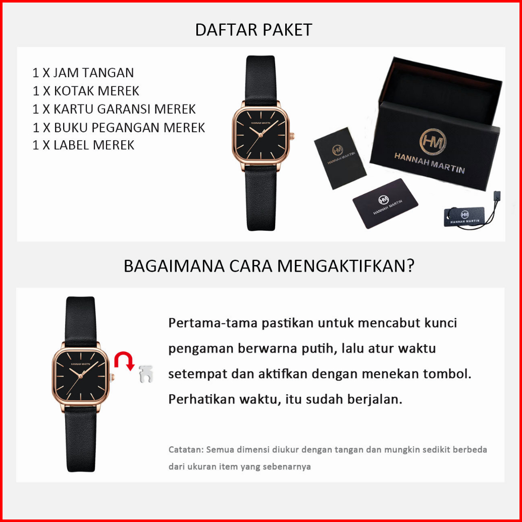 Hannah Martin Jam Tangan Wanita 100 Original Keren Klasik Mode Display Kuarsa Santai Jam Tali Kulit Tahan Air Kecil Jam