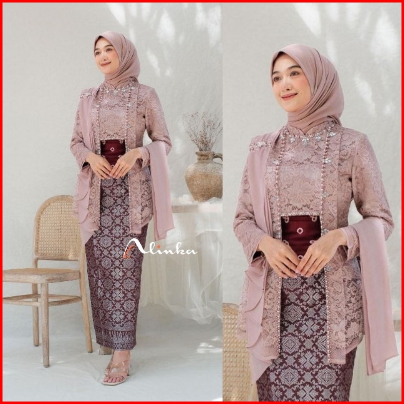 Kebaya Kutubaru Laksmi Set Kebaya Modern Wisuda Lamaran Tunangan Free Selendang Dan Obi Belt