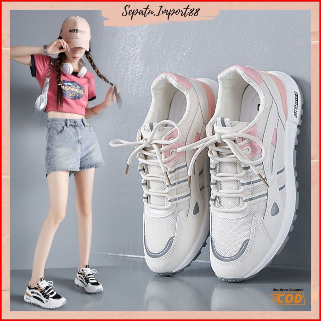 Sepatu Import88 - Sp 733 Sepatu Wanita Sneakers Wanita Olahraga Putih Hitam Pink Premium Quality Casual Shoes