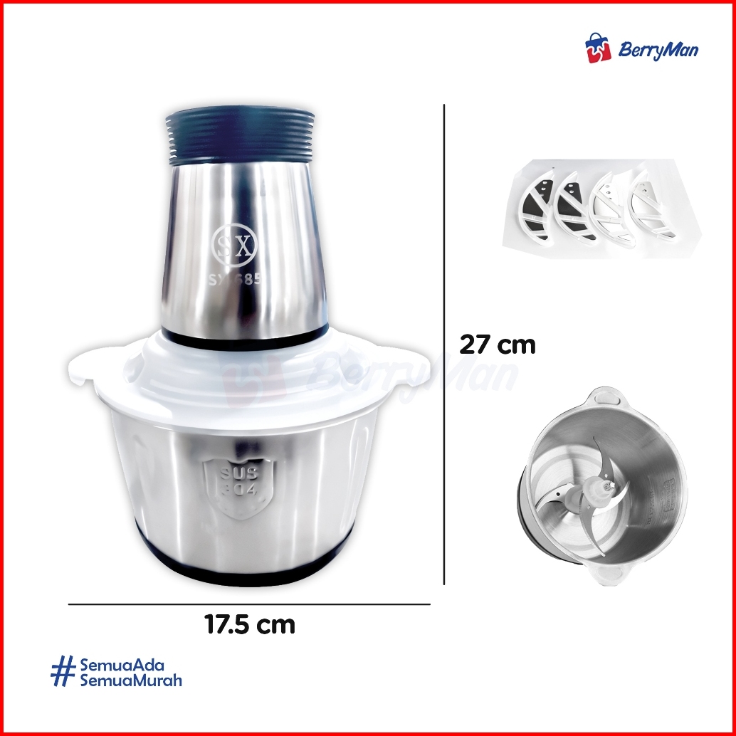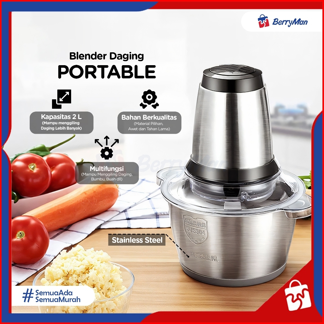 Blender Penggiling Daging 2 Liter 4 Mata Pisau Stainless Steel Meat Chopper Elektrik 250w