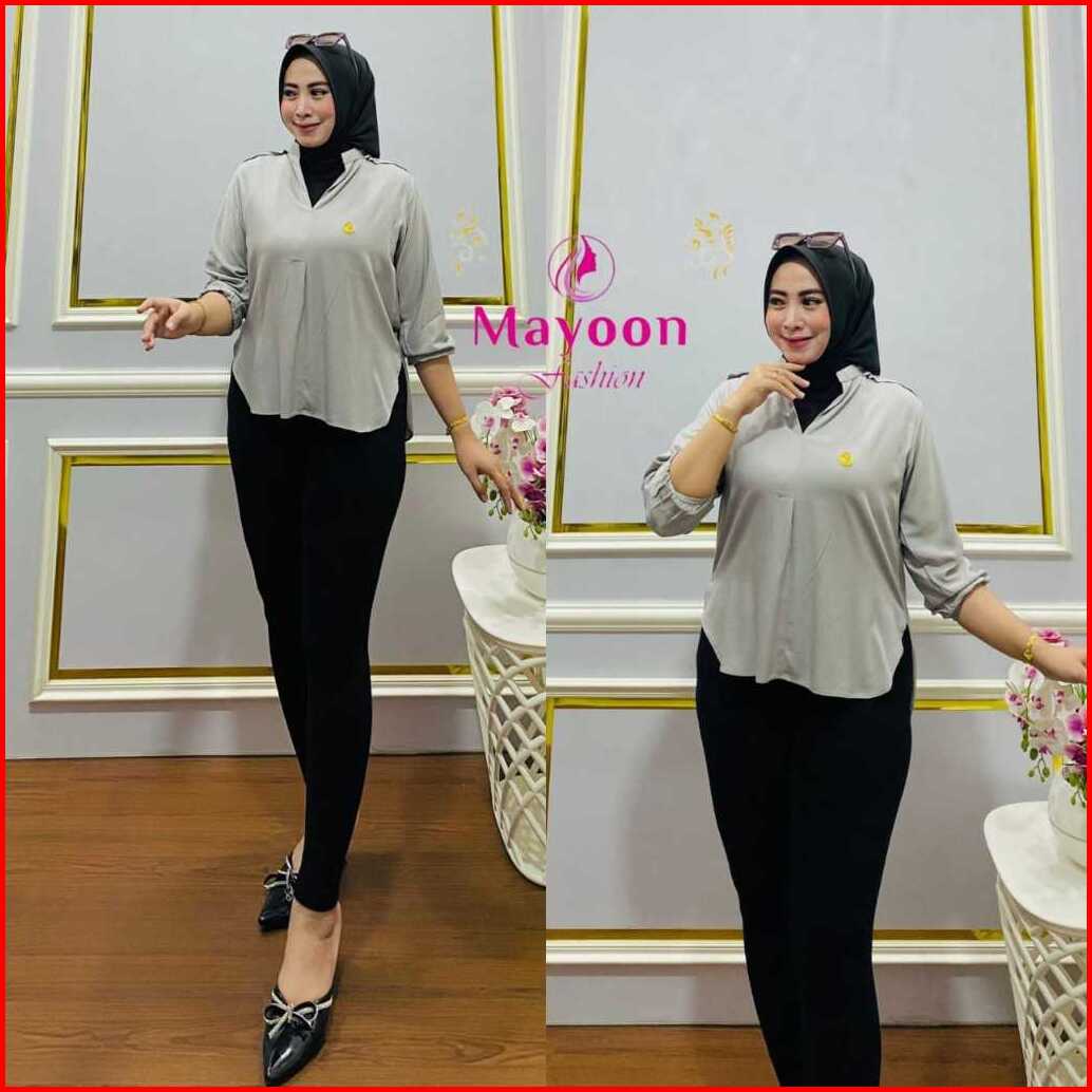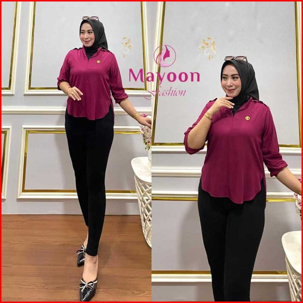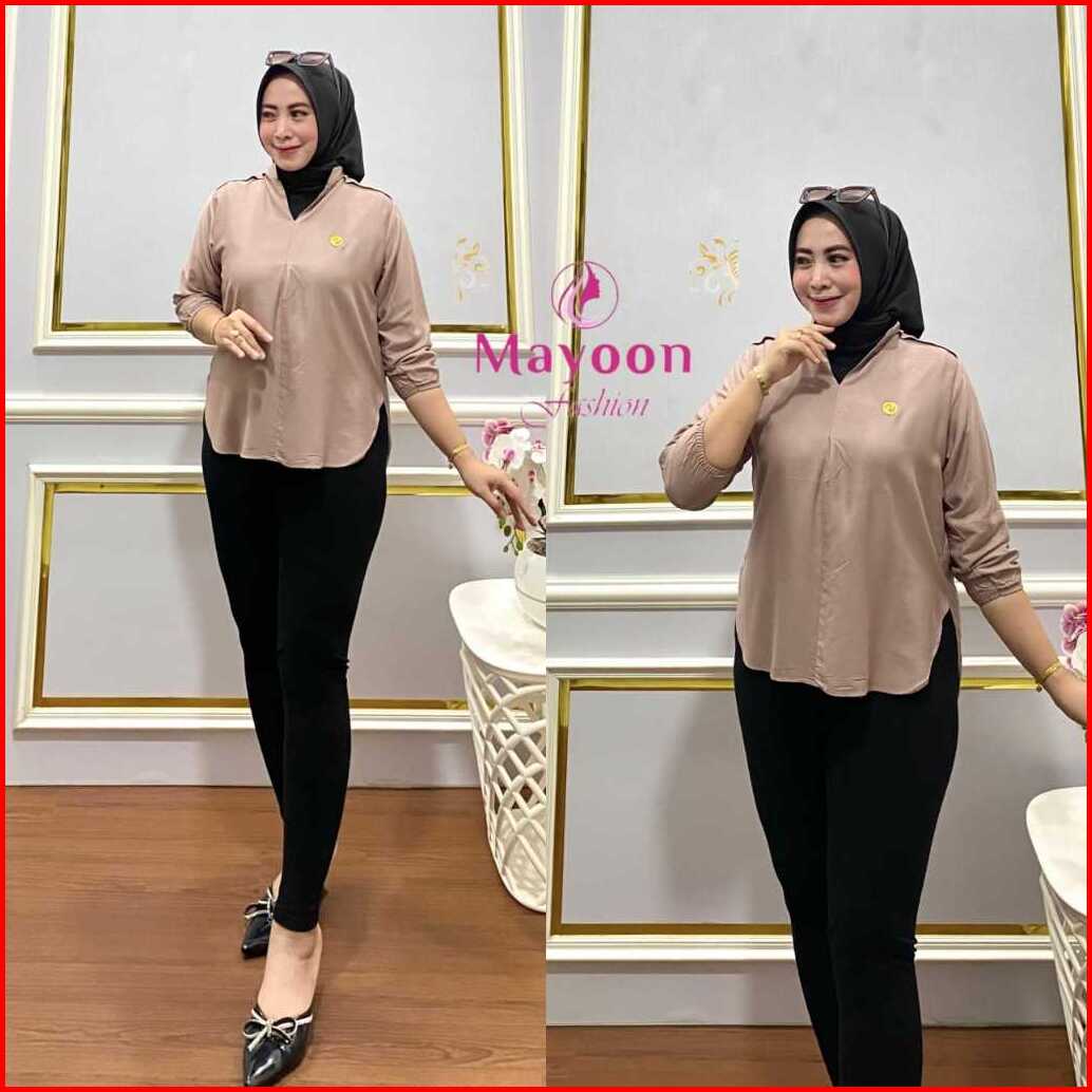 Kemeja Blouse Polos Wanita Vneck Lengan 7 8 Rayon Twil Premium