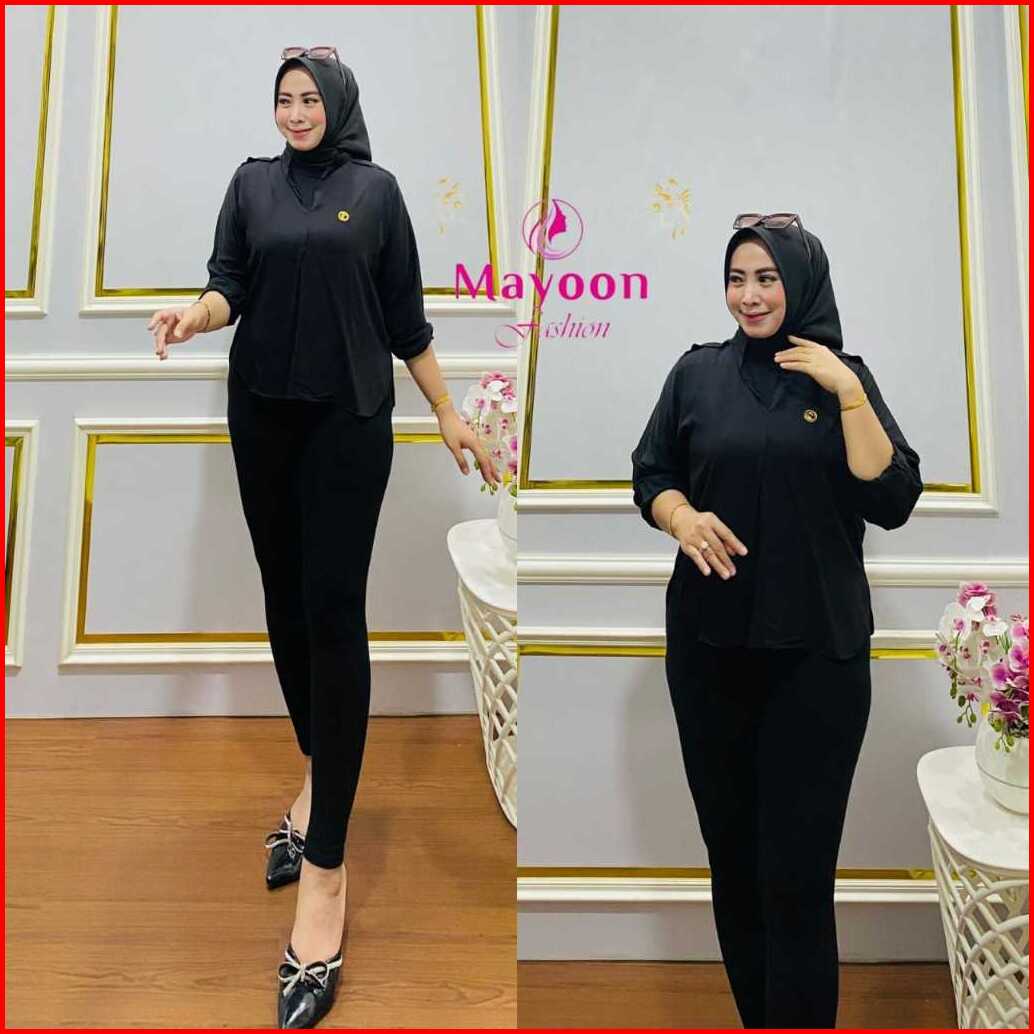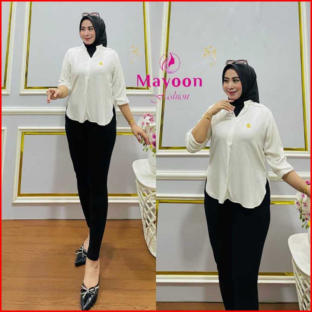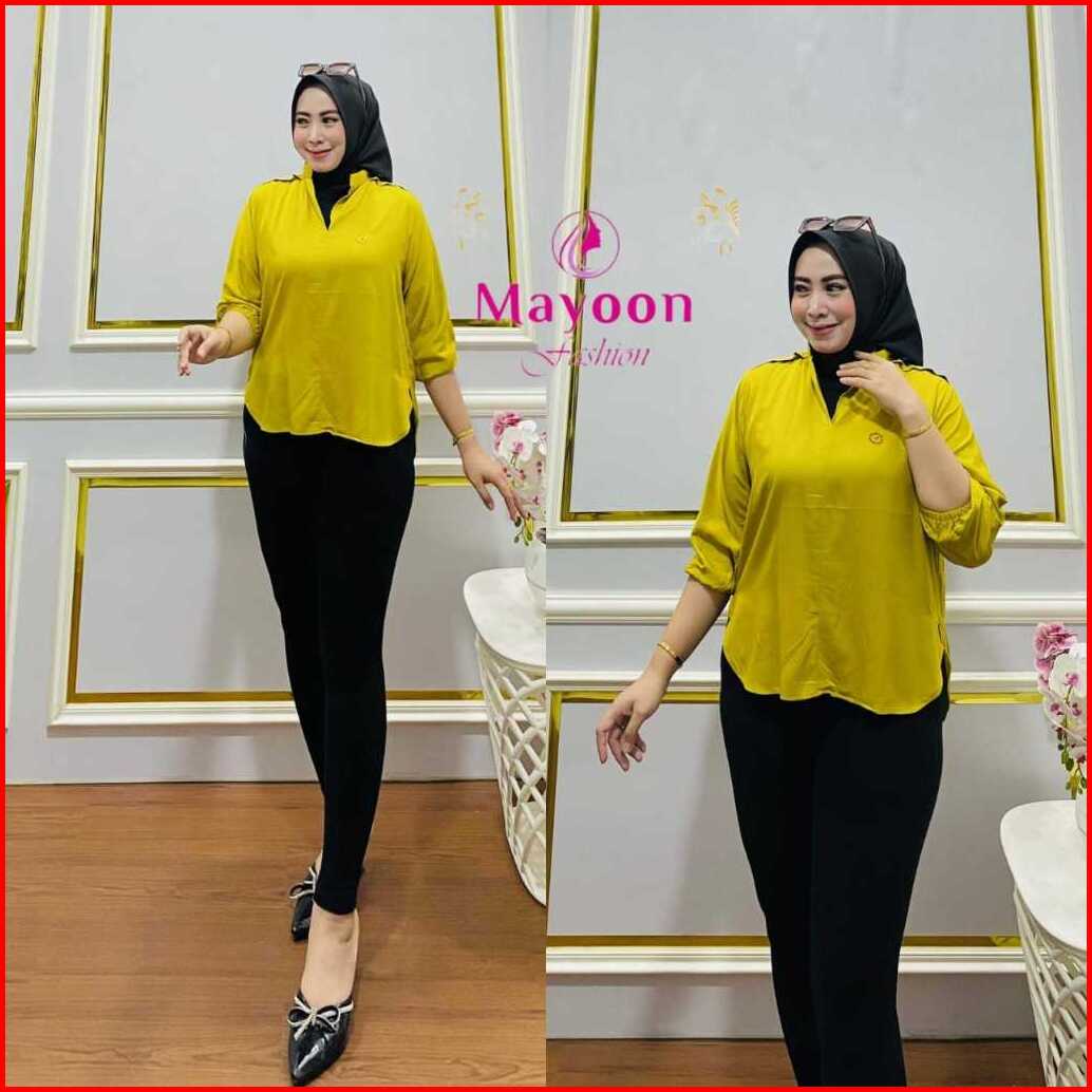 Kemeja Blouse Polos Wanita Vneck Lengan 7 8 Rayon Twil Premium