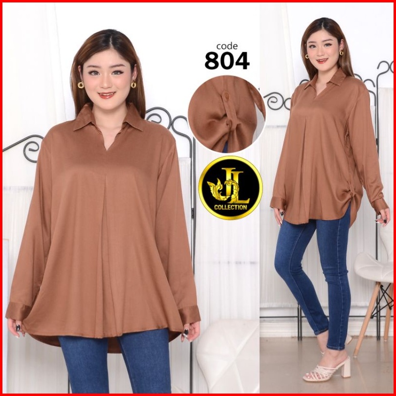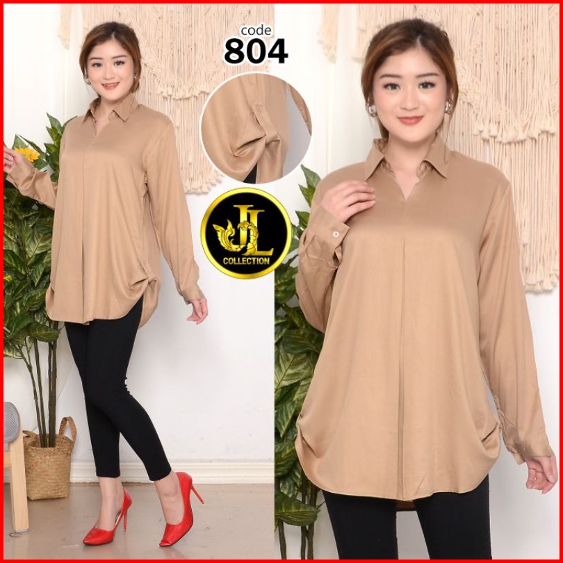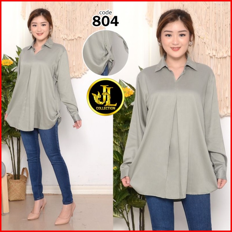 Kemeja Wanita Kemeja Lengan Panjang Samping Skodel Bahan Rayon Twill 804