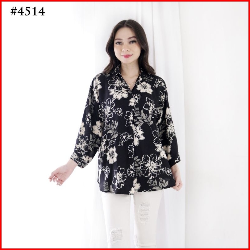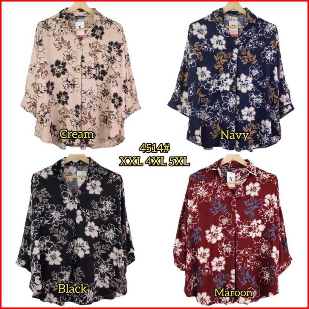 Atasan Kemeja Wanita V-neck Jumbo Rayon Bunga Ld 110 120 130 Cm Super Big Size Xxxxxl 5xl 4514a