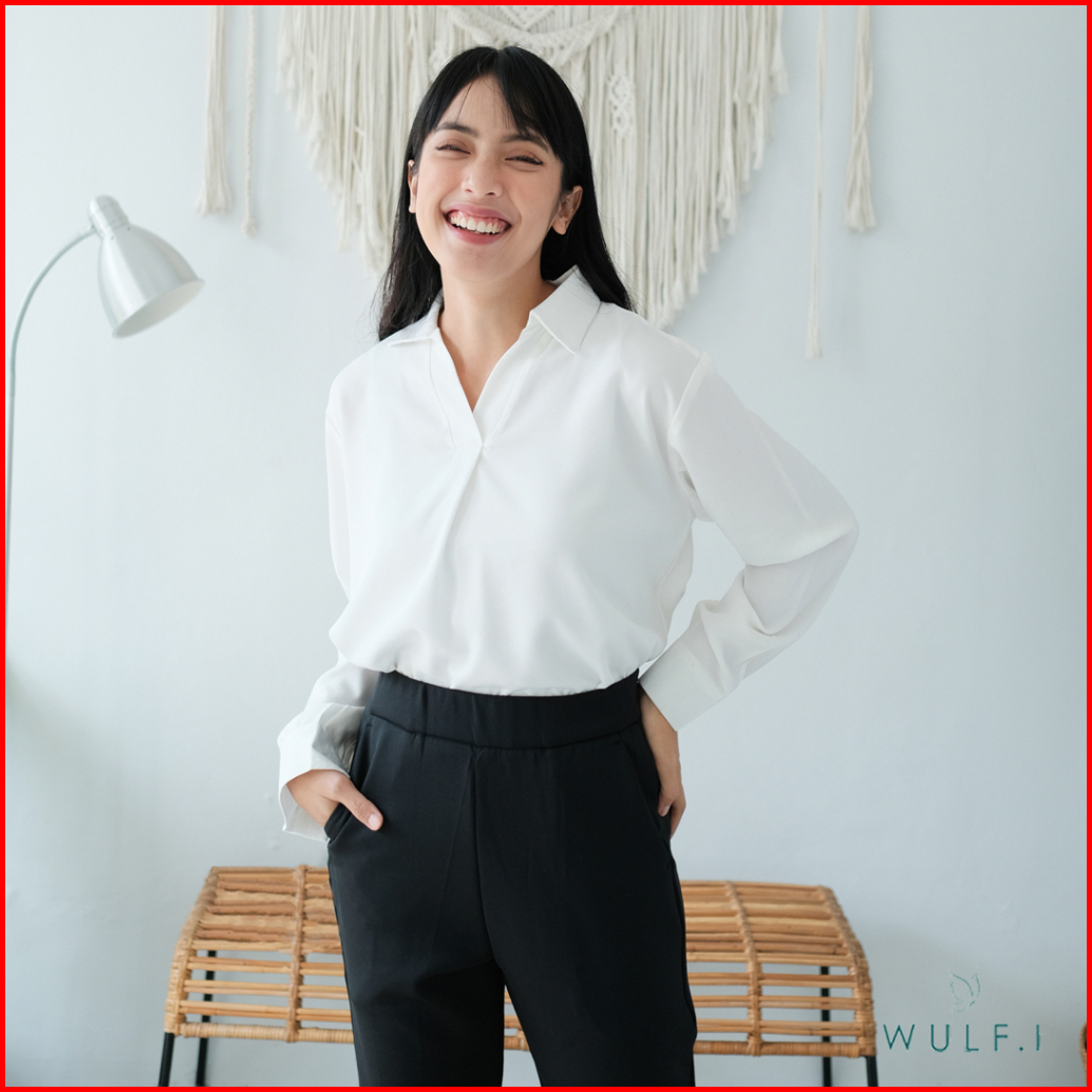 Wulfi Atasan Kemeja Plus White Kemeja Lengan Panjang Putih Kemeja Kantor Blouse Wanita Kemeja Jumbo