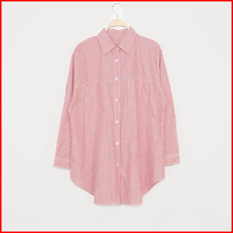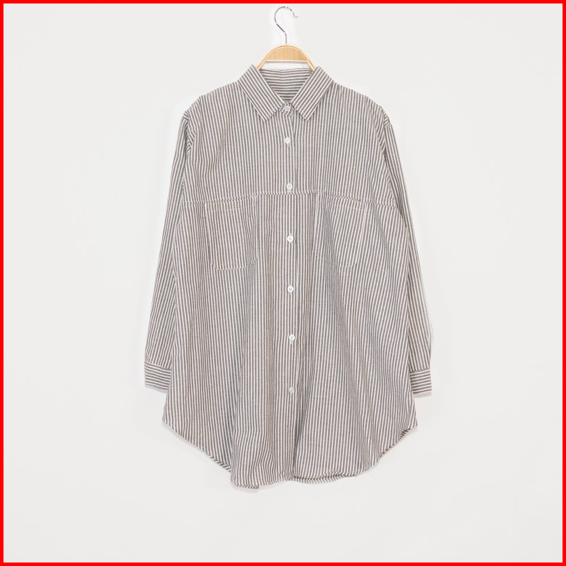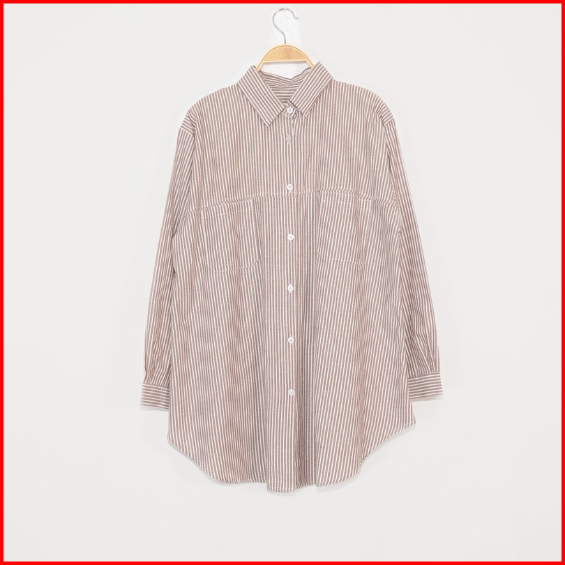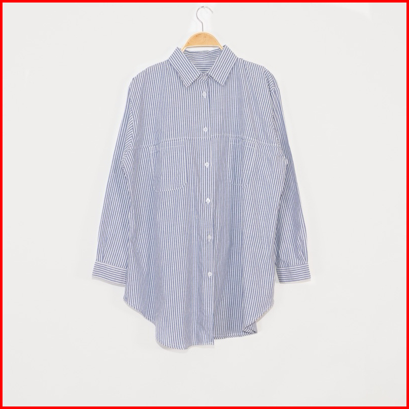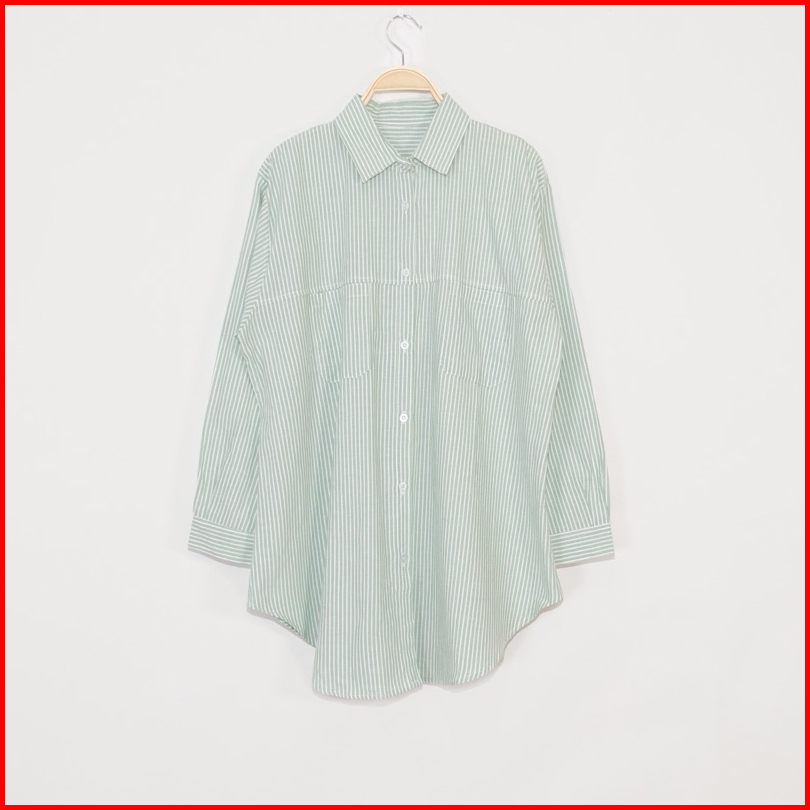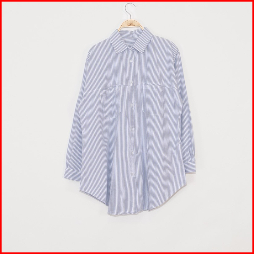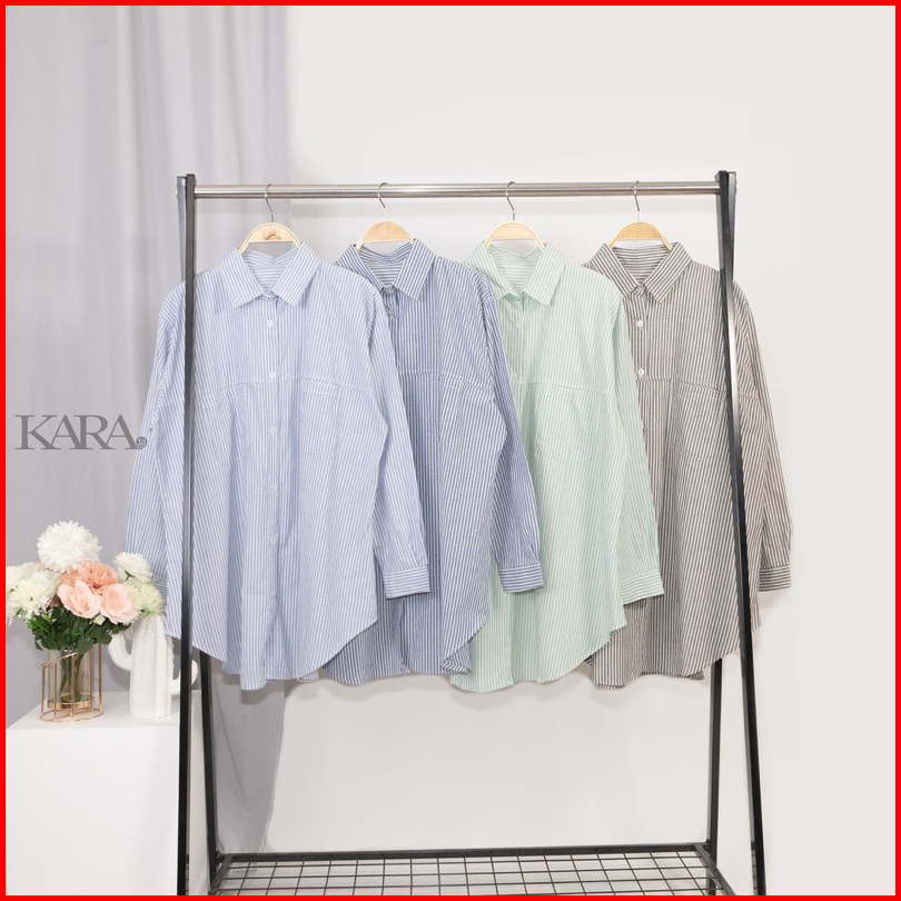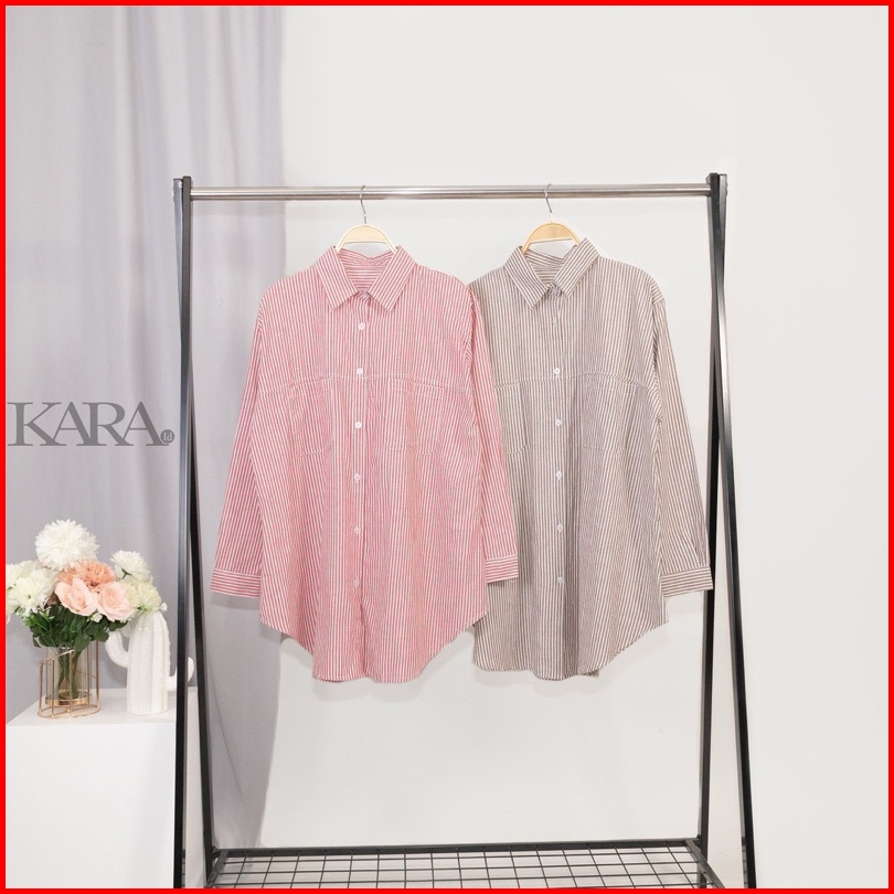 Kara.id Belva Shirt Atasan Wanita - Kemeja Salur Katun Lengan Panjang - Stripe Shirt