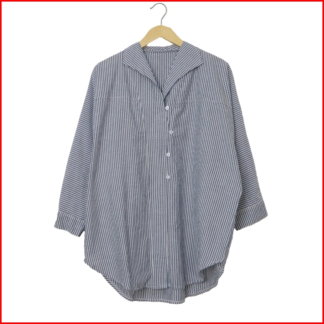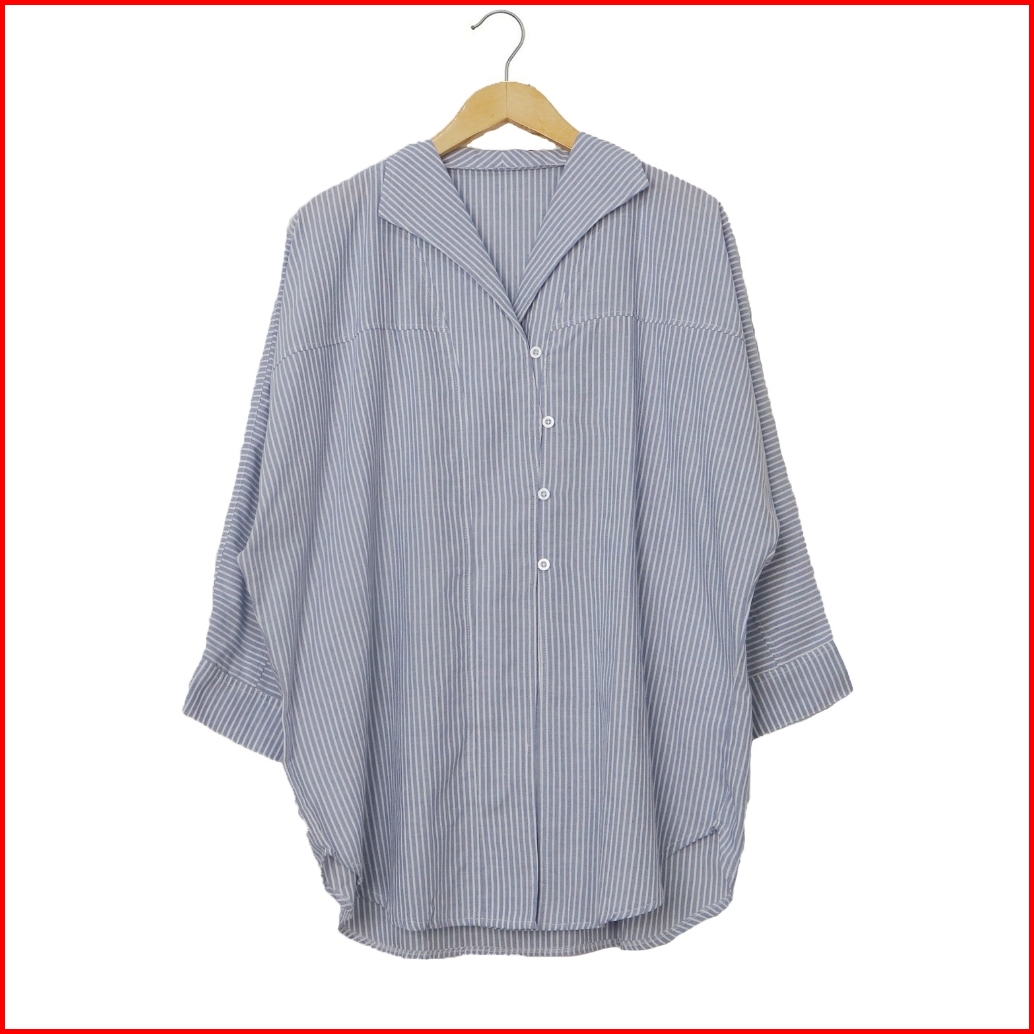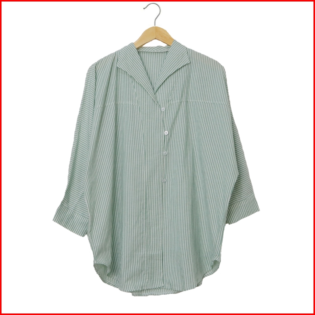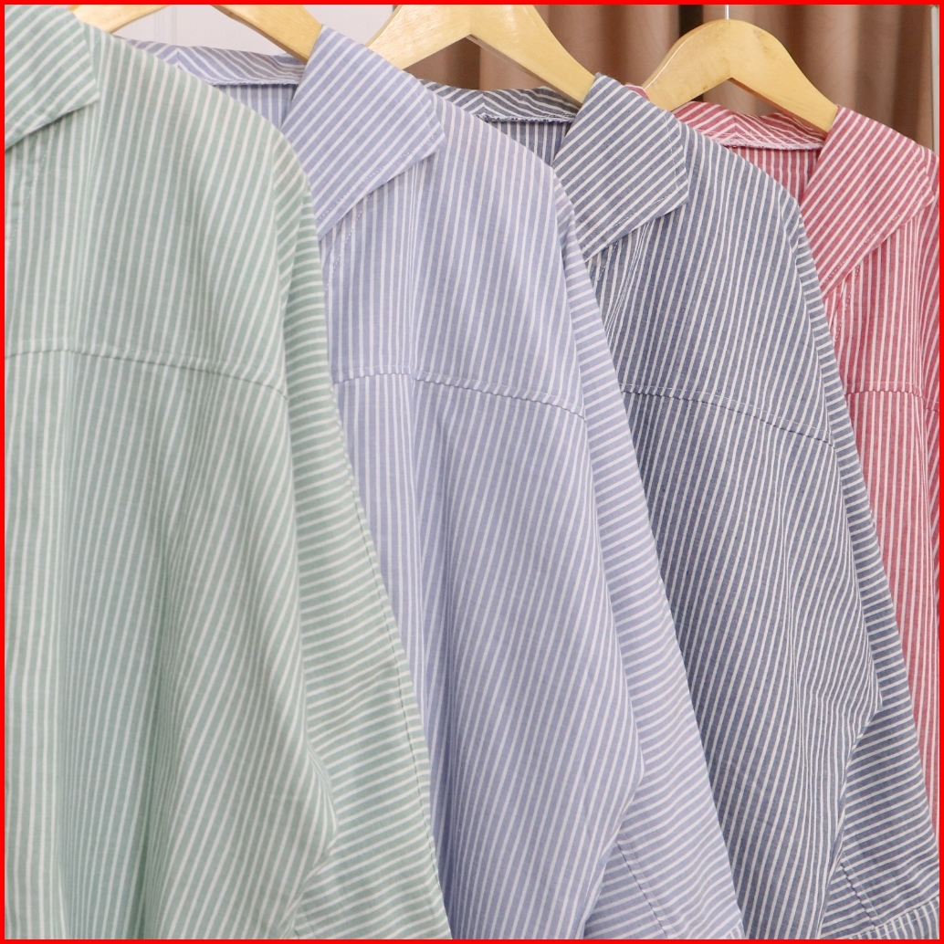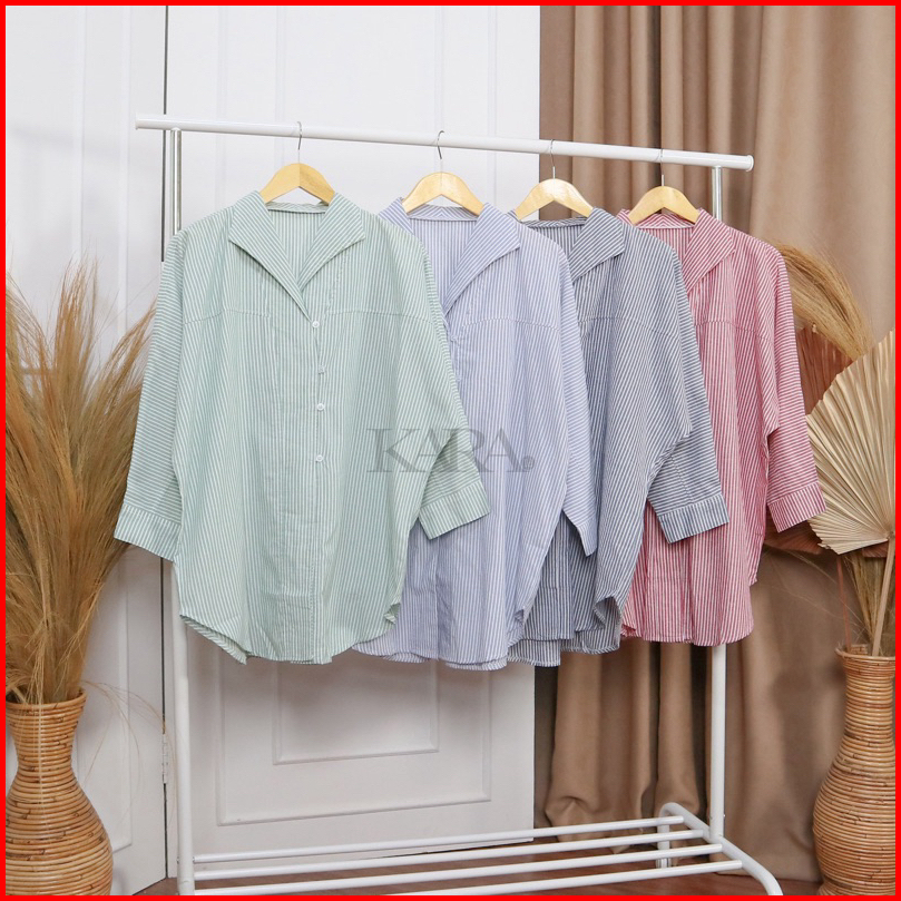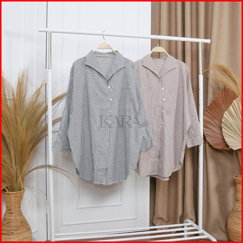 Kara.id Raine Shirt Stripe Kemeja Wanita Salur Oversized - Atasan Wanita V Neck - Stripe Shirt