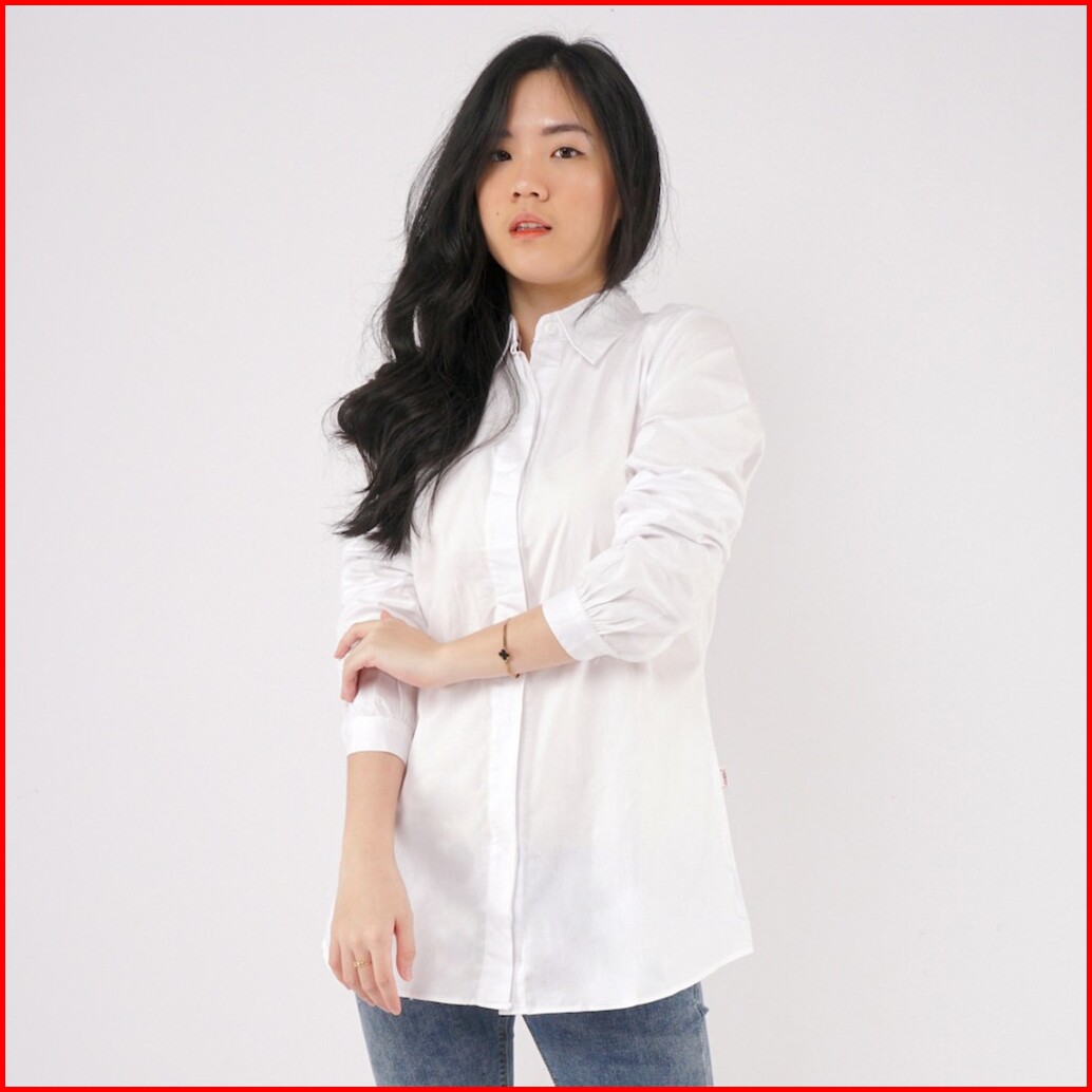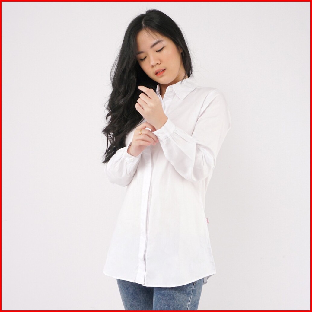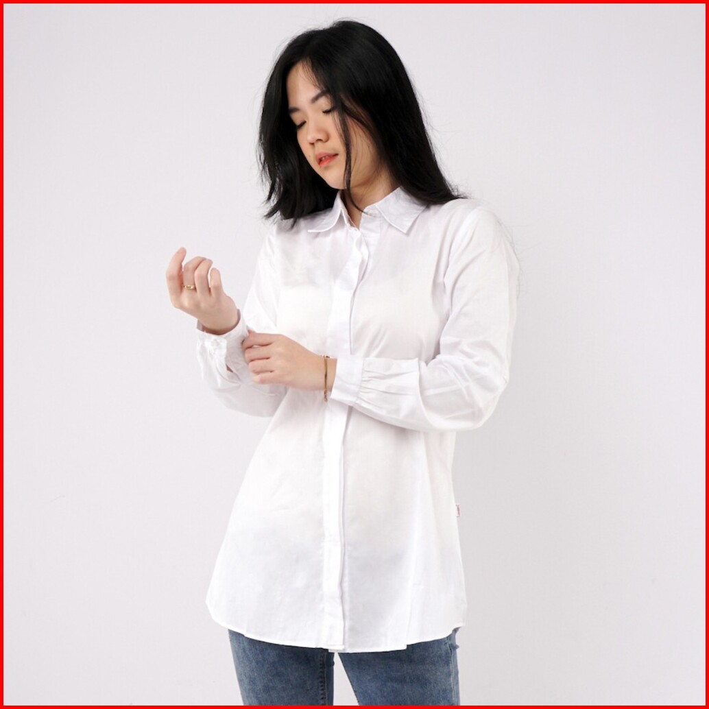 Kemeja Wanita Polos Lengan Panjang Slimfit - Putih White - Aura Catalogue Slimfit Plain Shirt