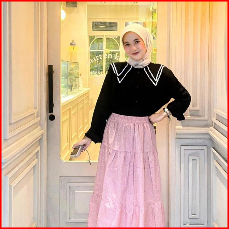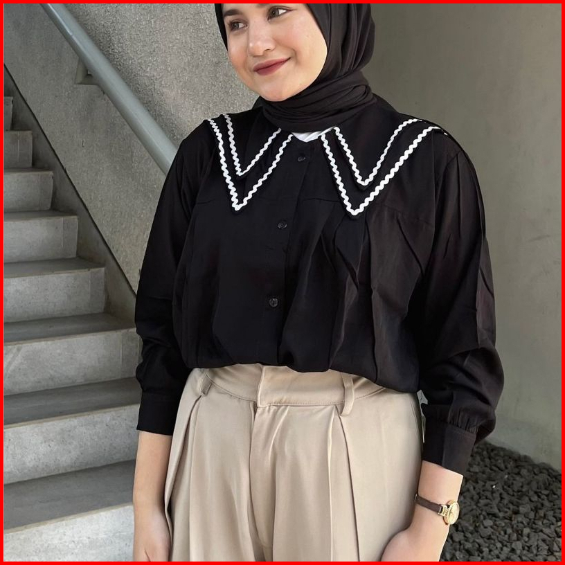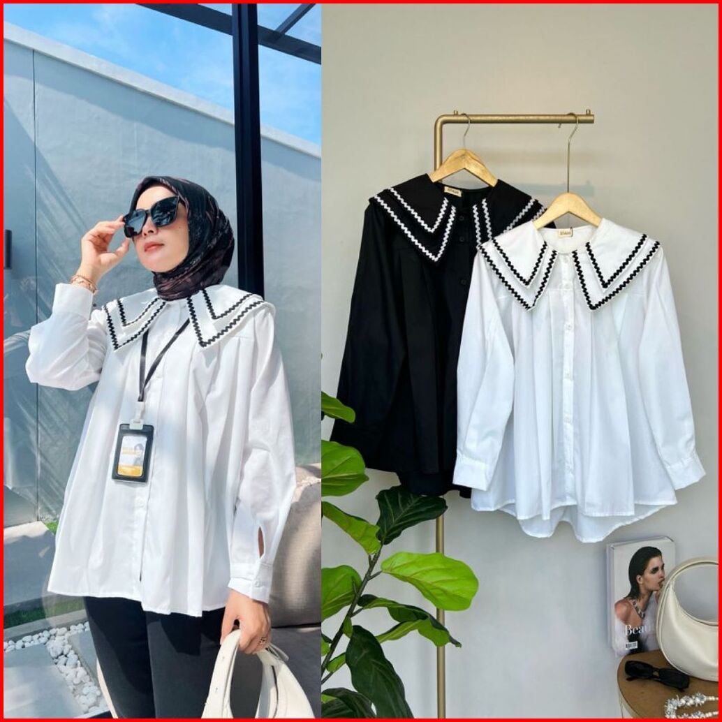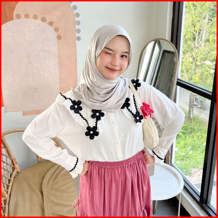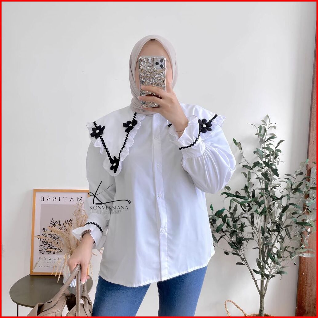 Gladys Blouse Kemeja Wanita Korean Style Kerah Renda Atasan Wanita Rayon Twill Premium