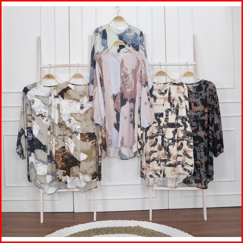 Kara.id Enola Blouse Motif - Atasan Wanita Oversize - Blouse Wanita