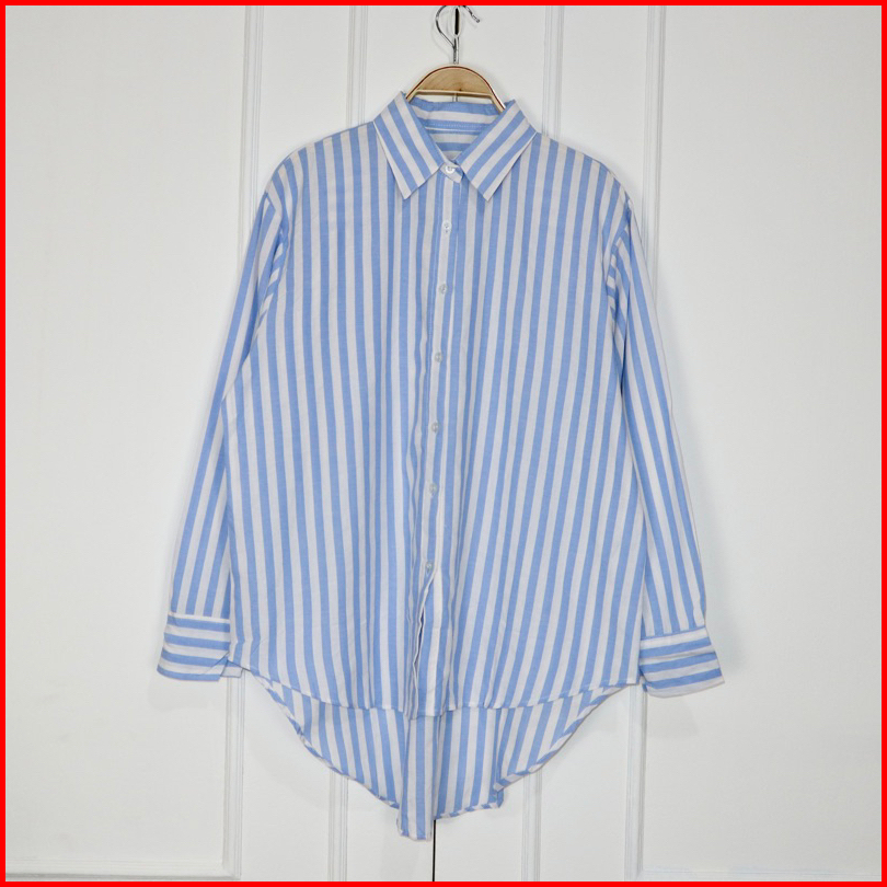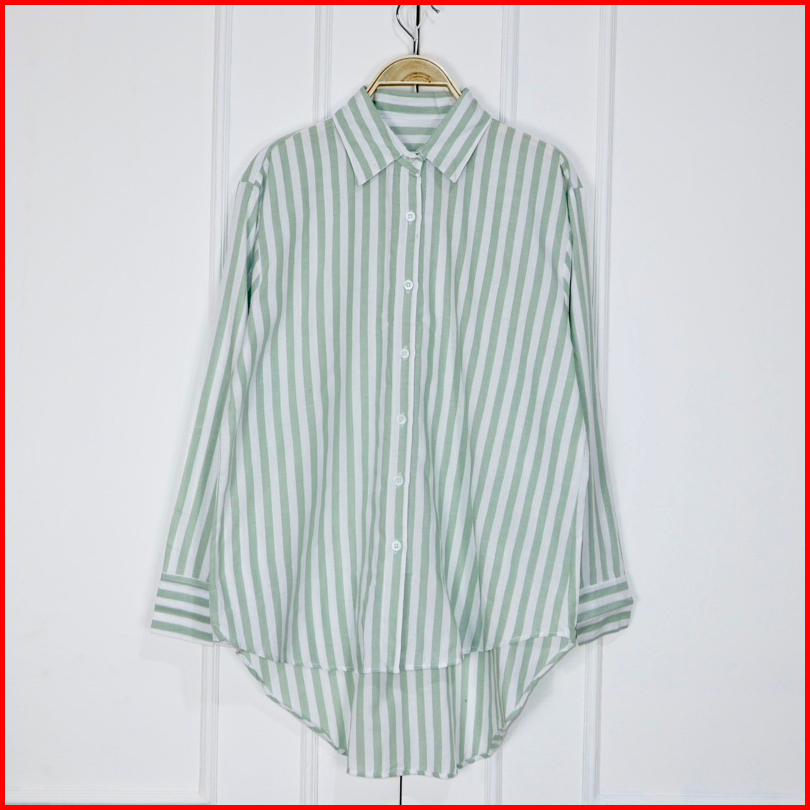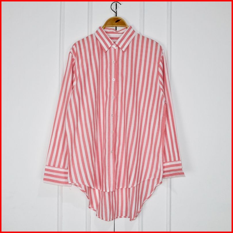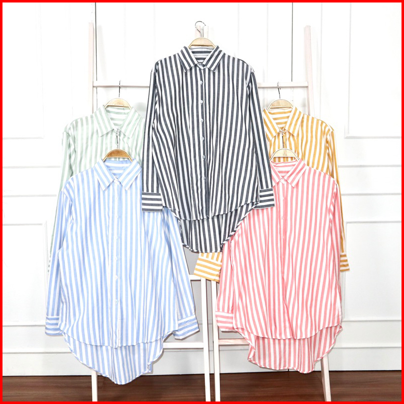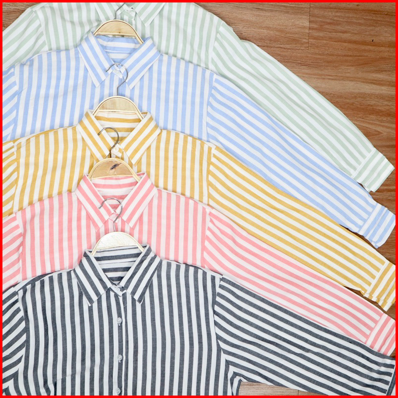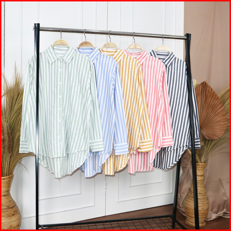 Kara.id Kemeja Basic Salur Katun Yanded - Kemeja Atasan Wanita Salur - Shirt Stripe