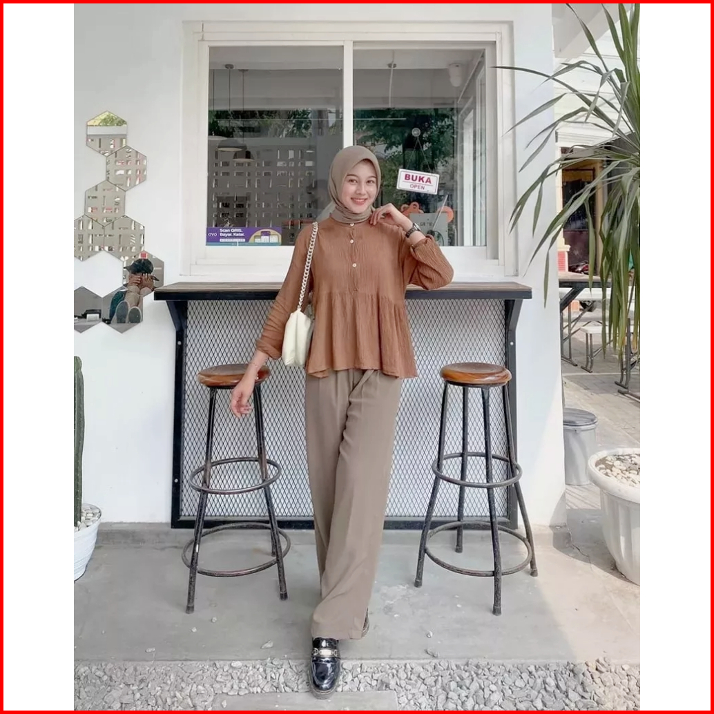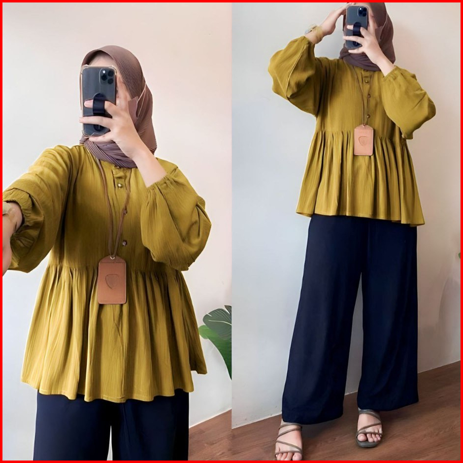 Gisela Blouse Polos Atasan Kemeja Wanita Rampel Depan Terbaru