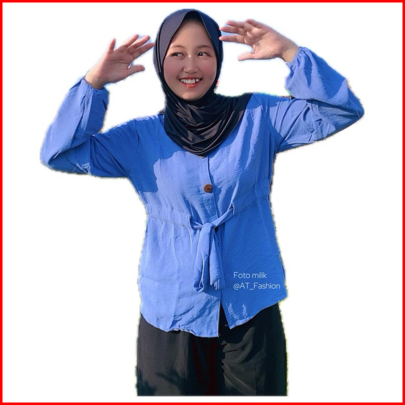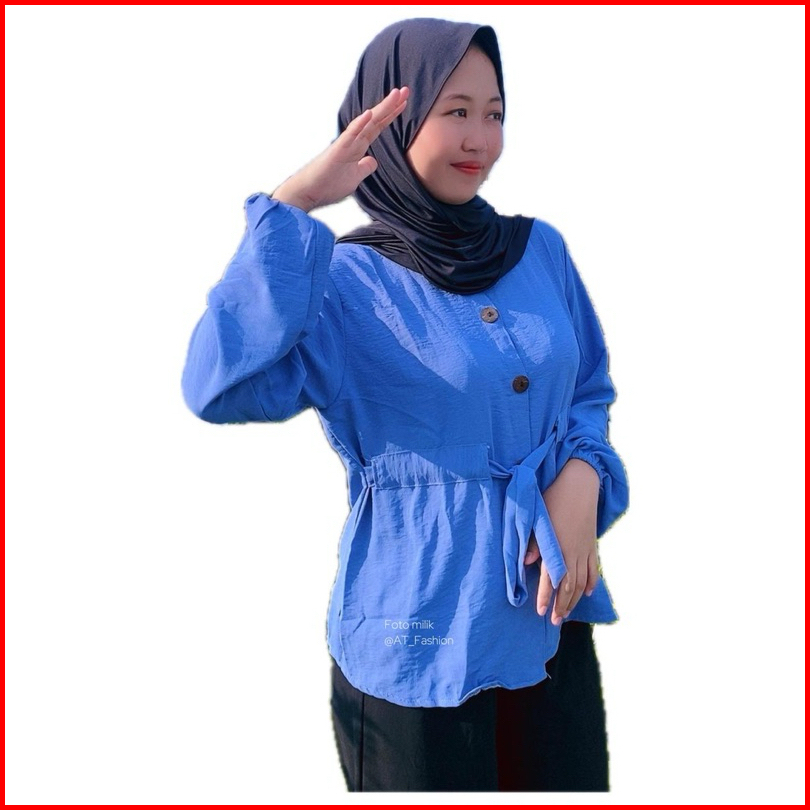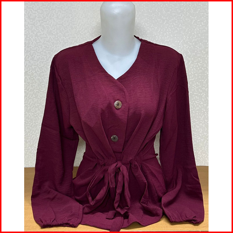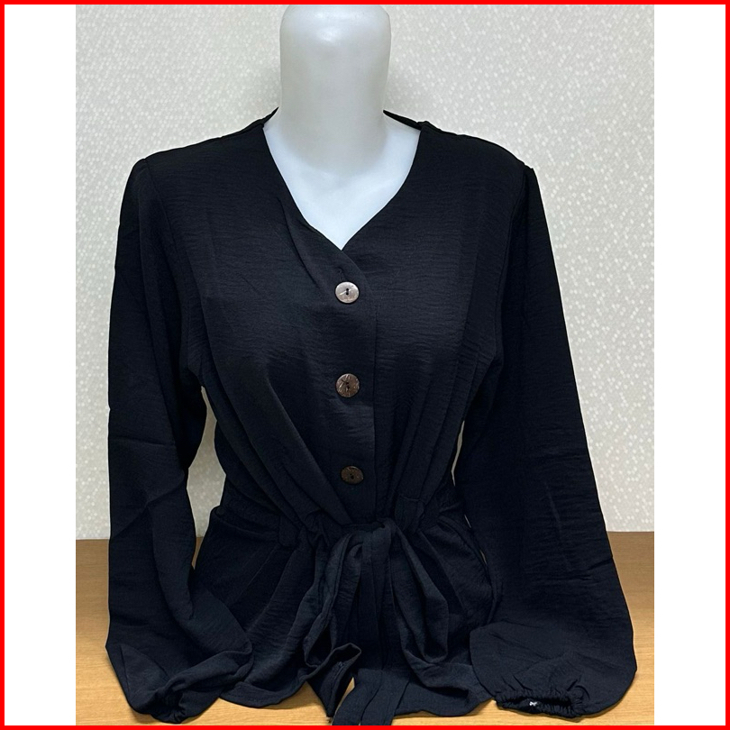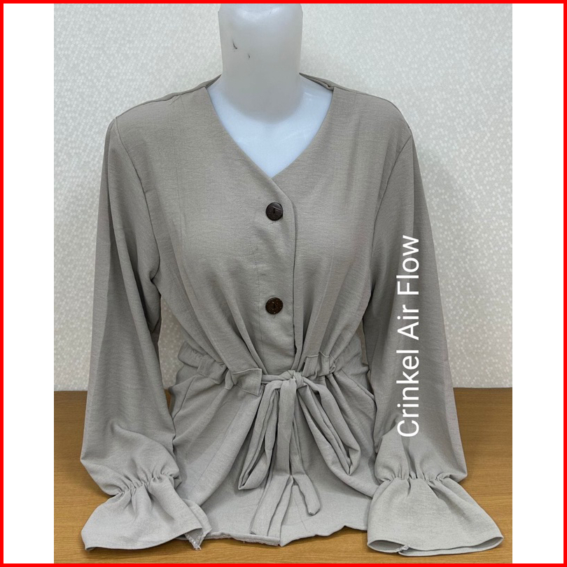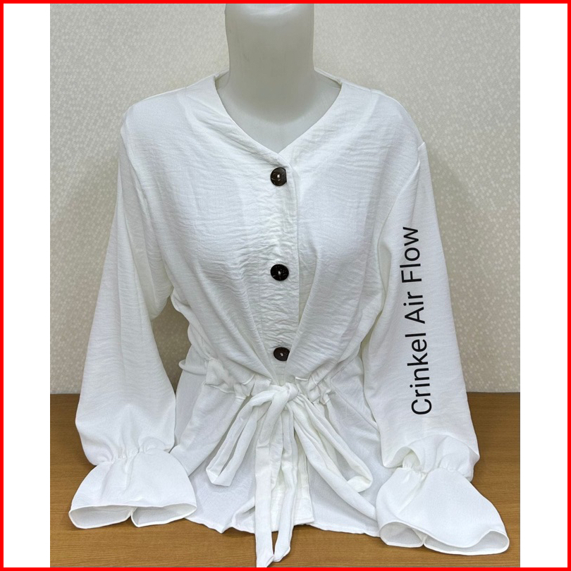 Blouse Korea - Blouse Kancing Batok Crinkel Air Flow- Atasan Wanita - Pakaian Terlaris - Korean Style - Pakaian Wanita -