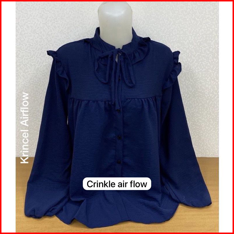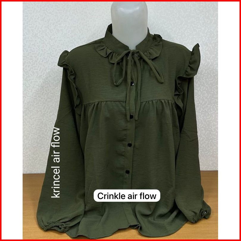 Blouse Shanghai Rumbai Tali Crinkle Air Flow - Atasan Wanita - Pakaian Terlaris - Korean Style - Pakaian Wanita - Blouse