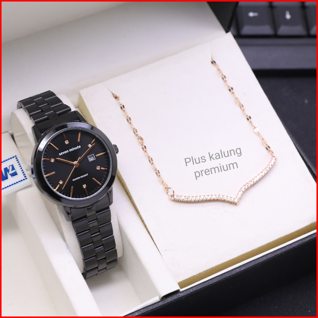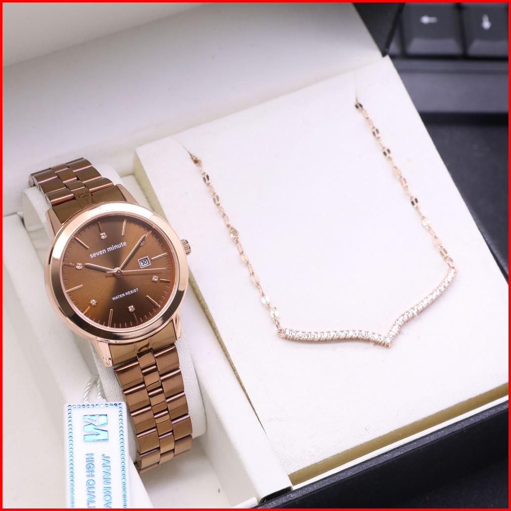 Jam Tangan Wanita Seven Minute Original M705 Plus Kalung Bundling Analog Cewek Premium